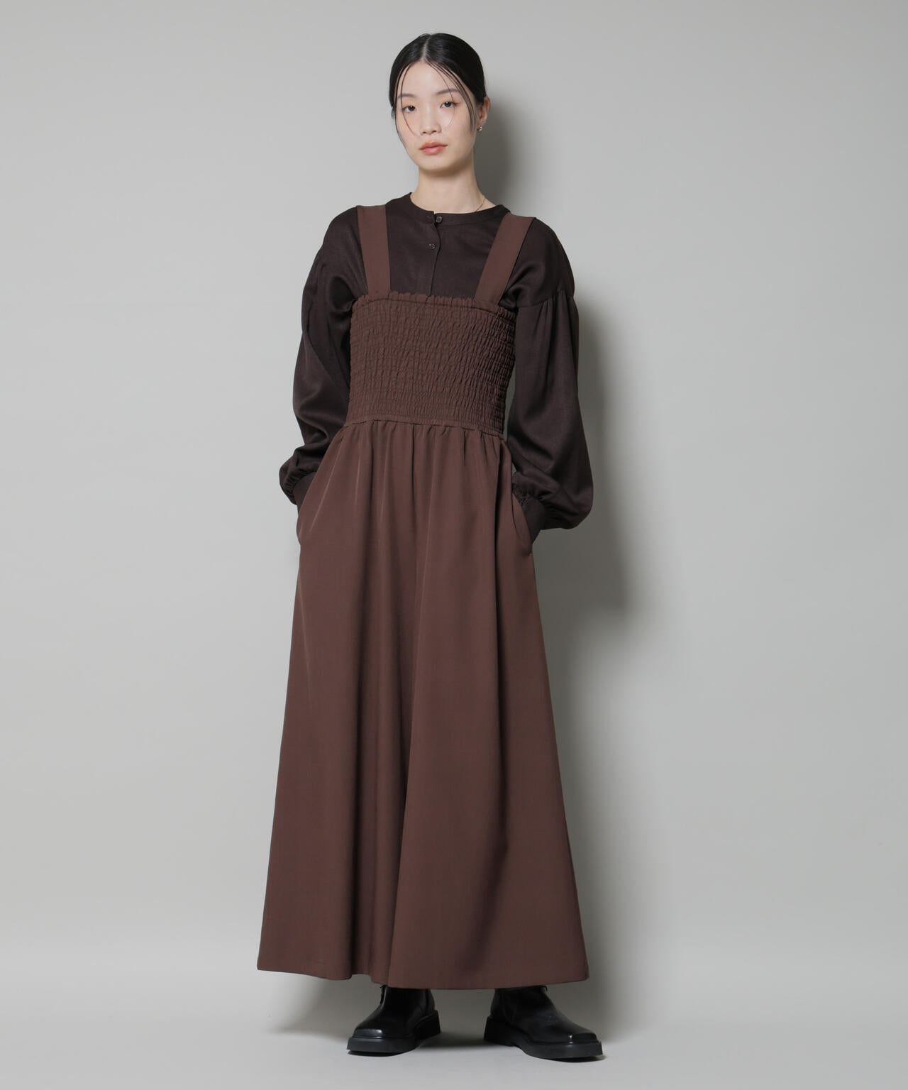 ・着るだけでお洒落な雰囲気にしてくれるシャーリングサロペット