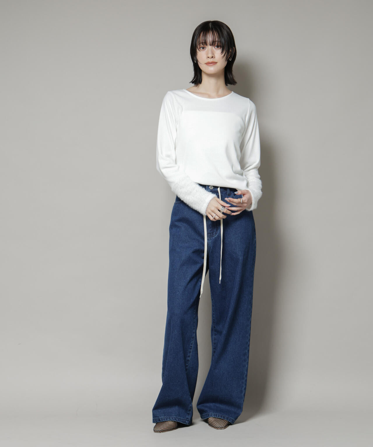 ・トップスを単品使いでニットなどを重ねて、袖口から見せるレイヤードも◎