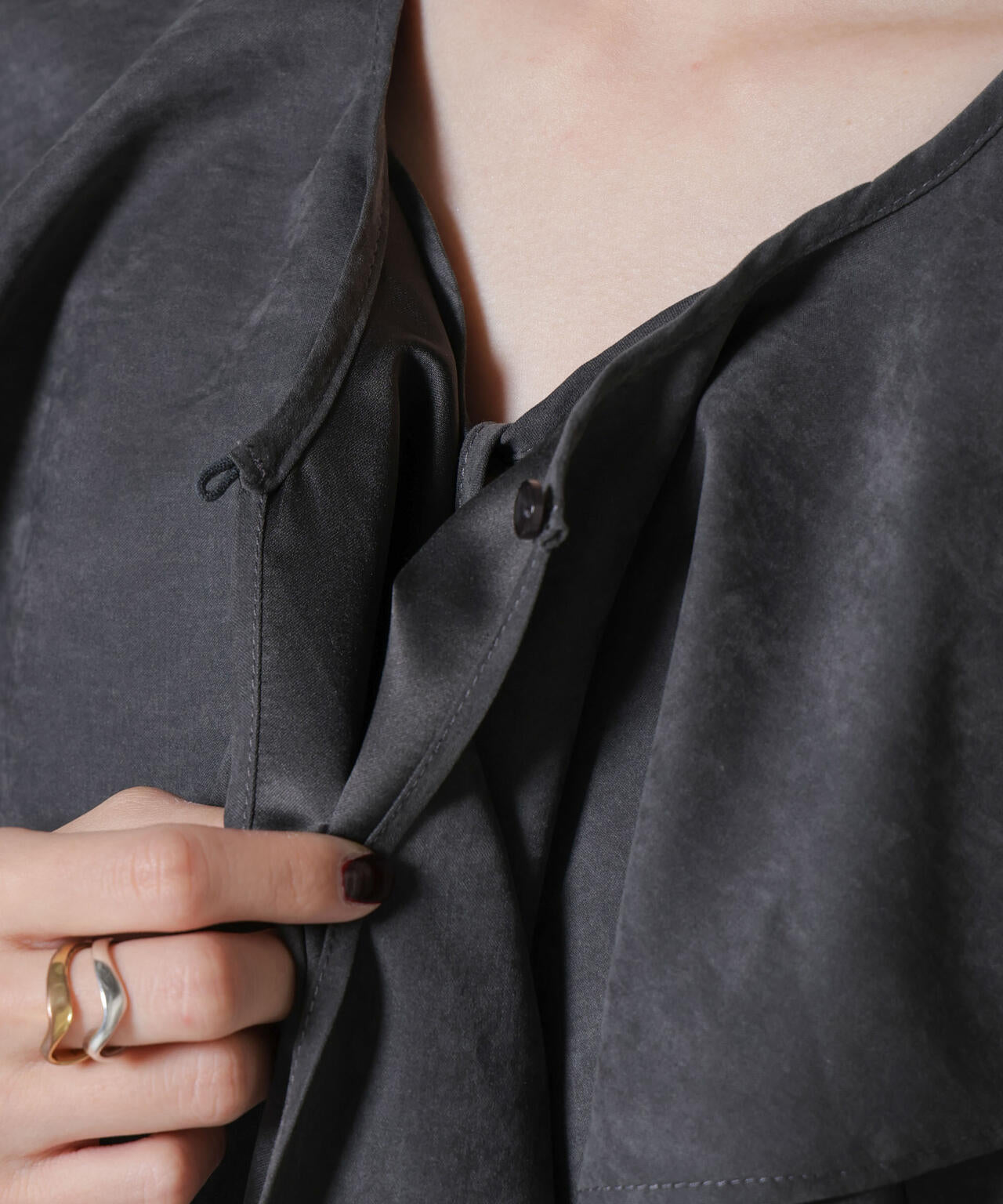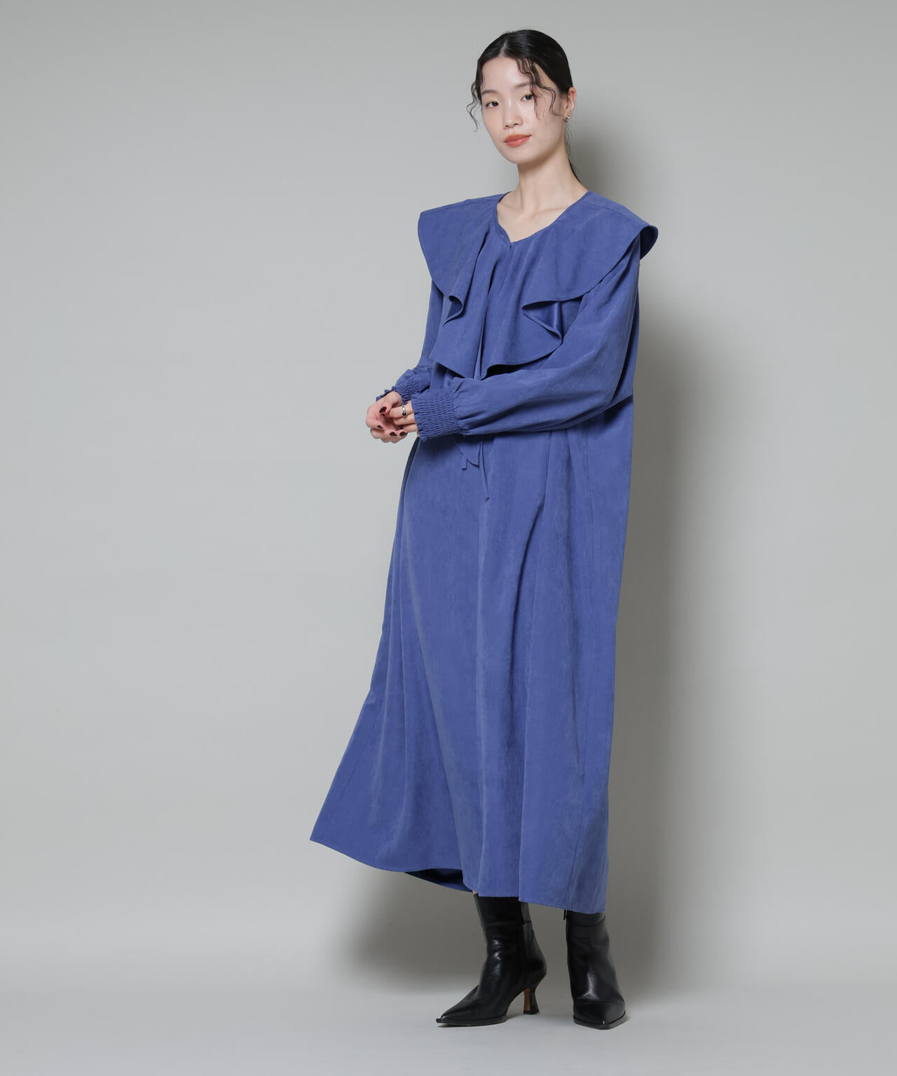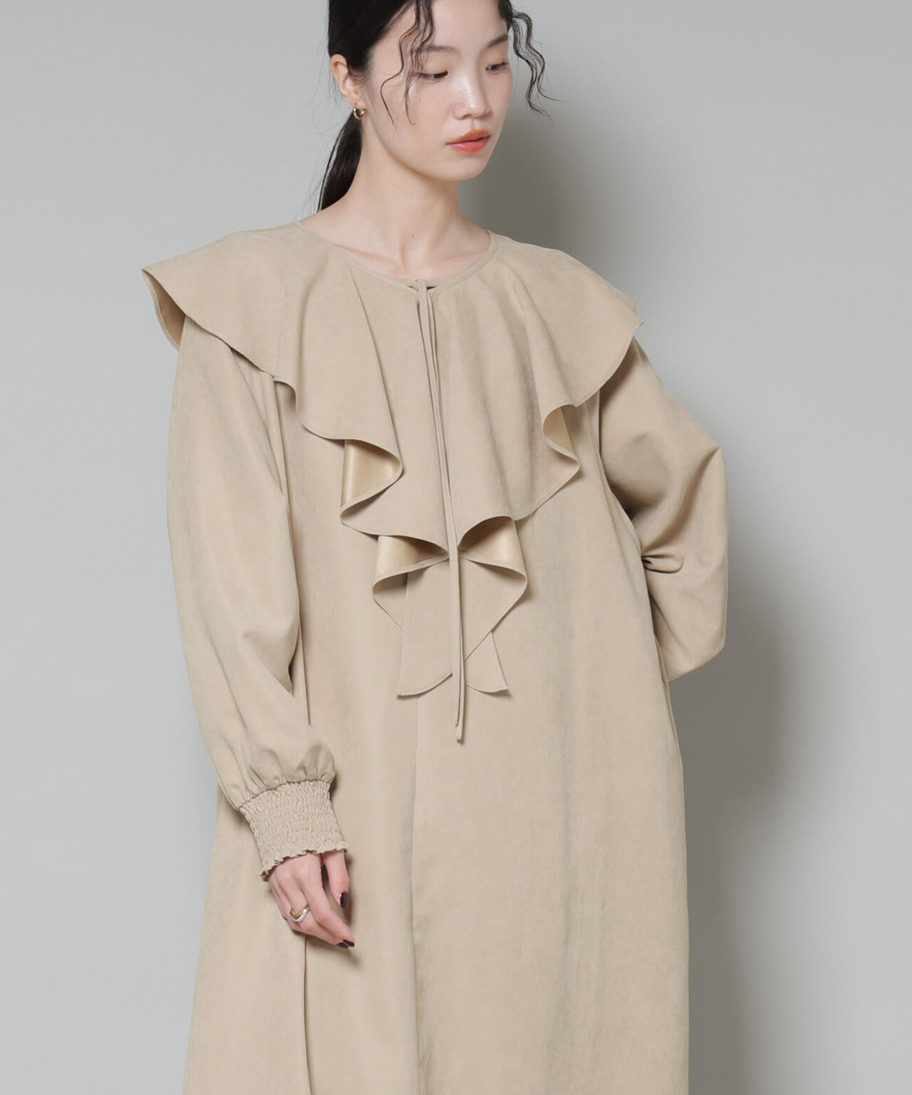 付属のラッフルカラーをつけると、トレンド感のあるフレアカラーワンピースとしても楽しめる一枚