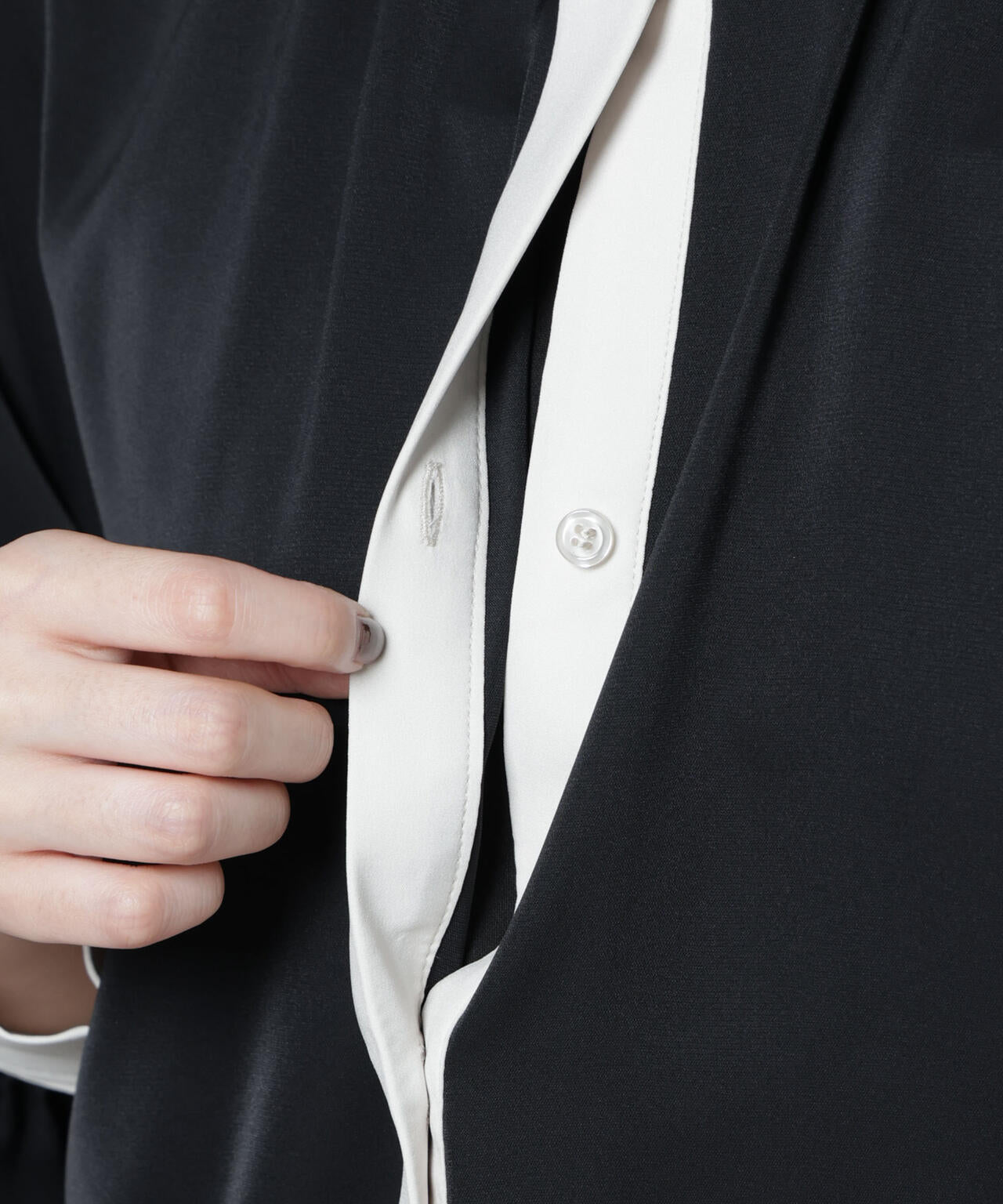上品な配色のバイカラーデザインが目を引く着映えブラウス