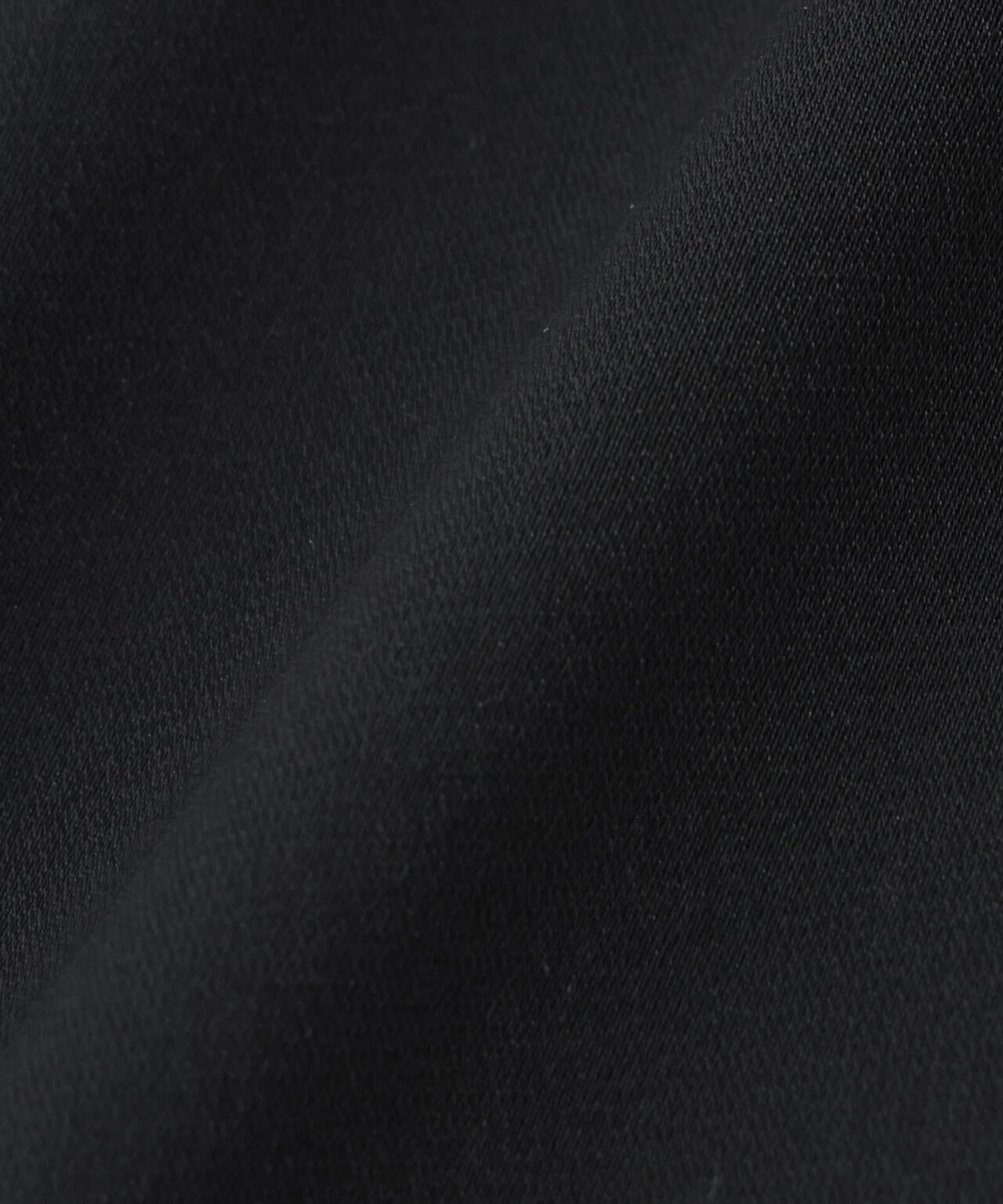 衿元に入ったギャザーやスタンドカラーのデザインが、甘すぎずシャープな印象