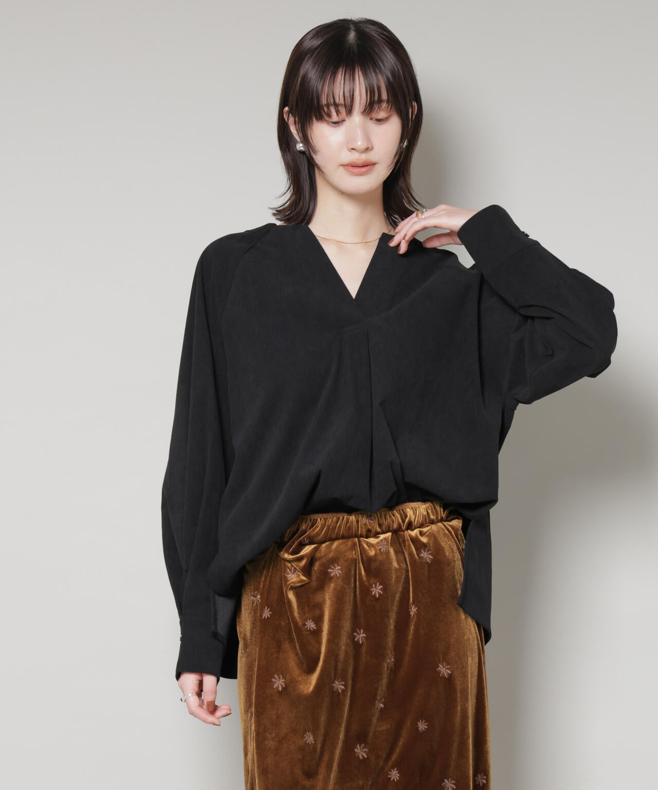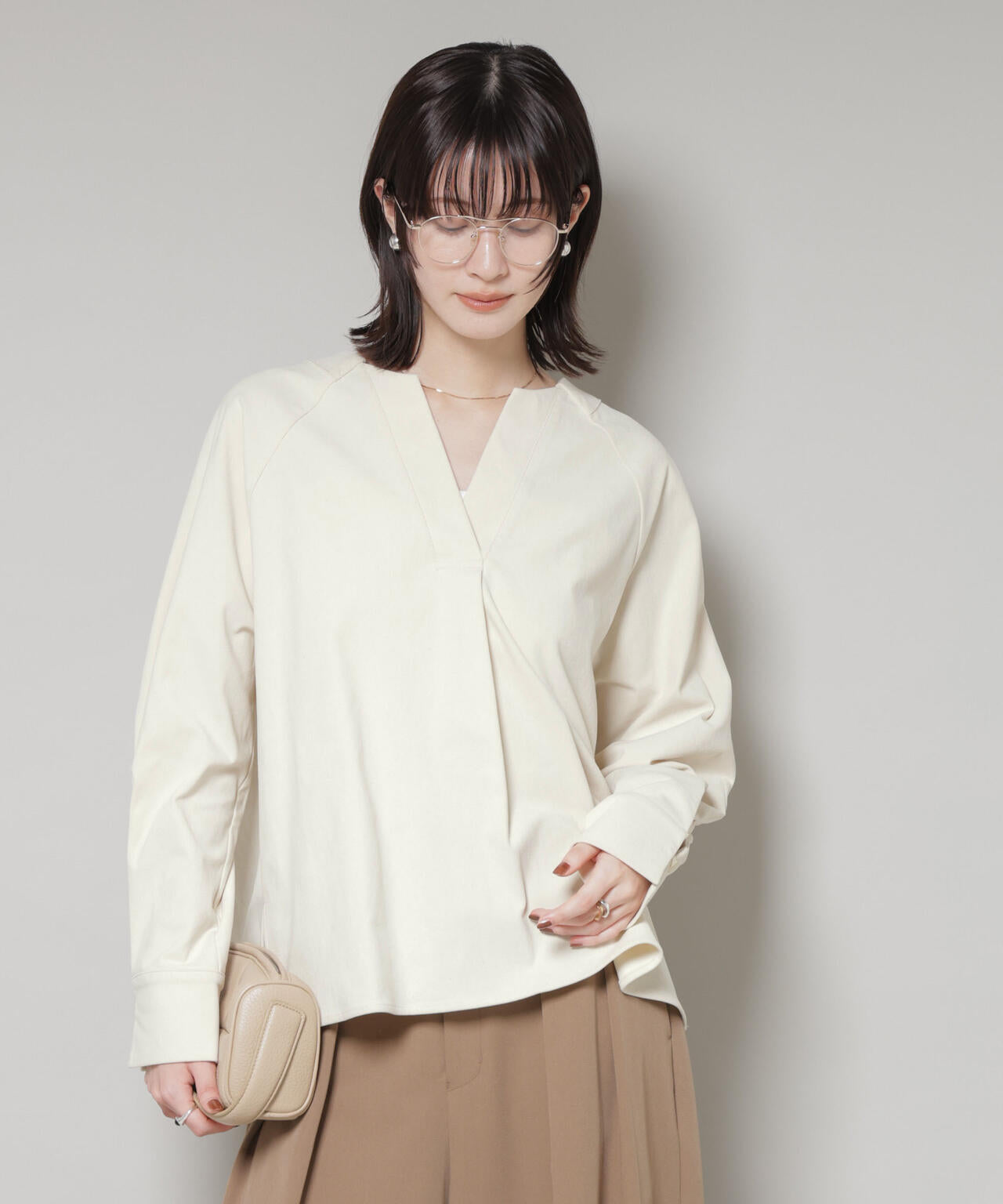 ON/OFFできちんと決まる、起毛素材のプルオーバーブラウス