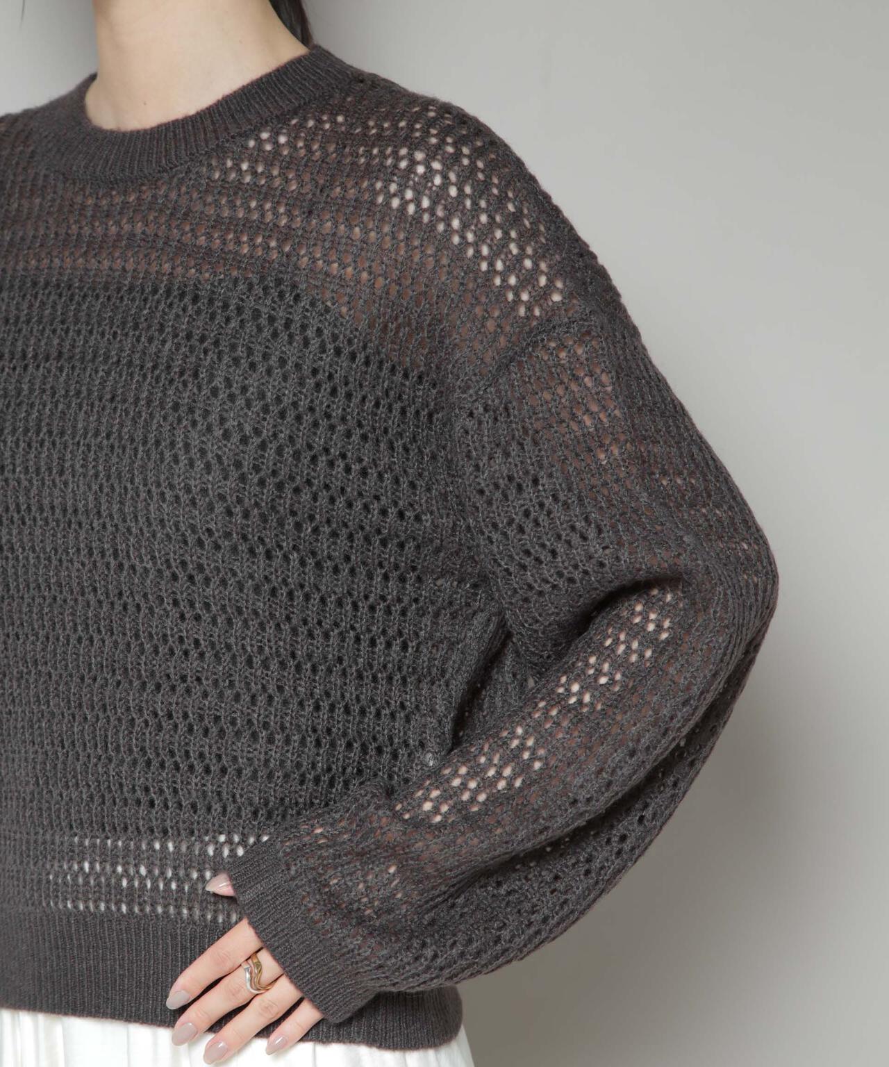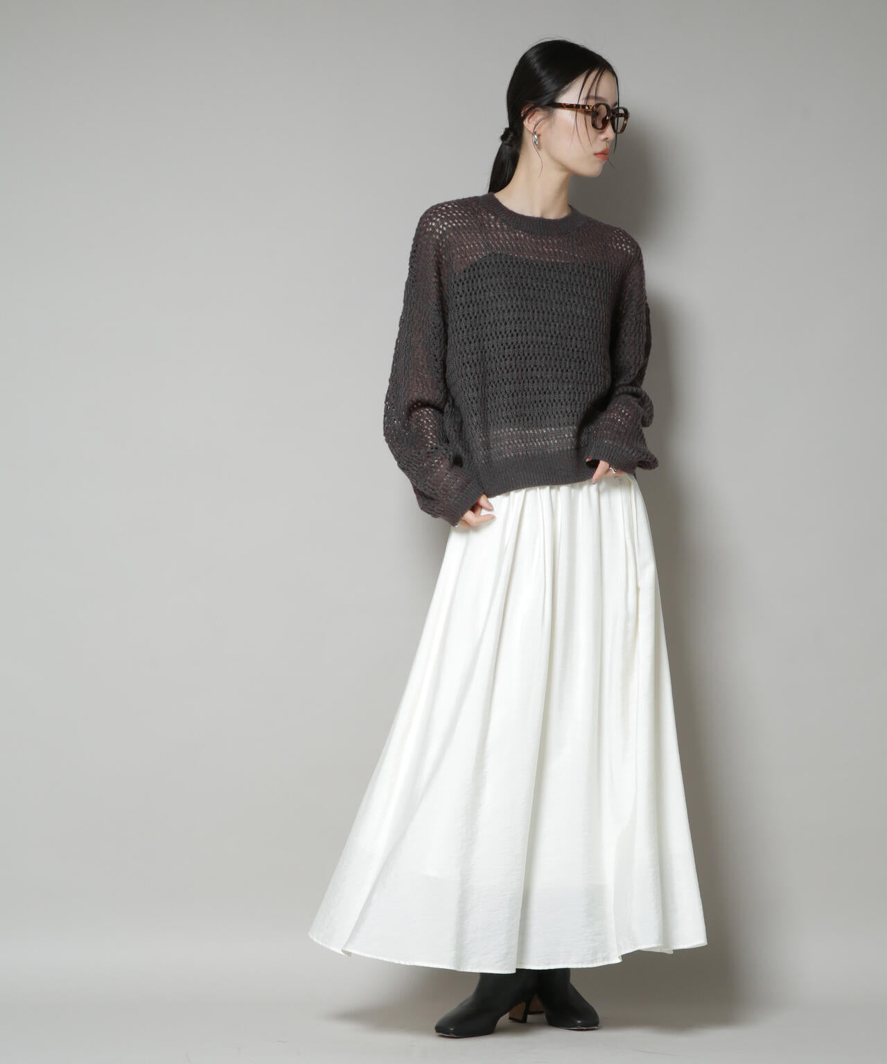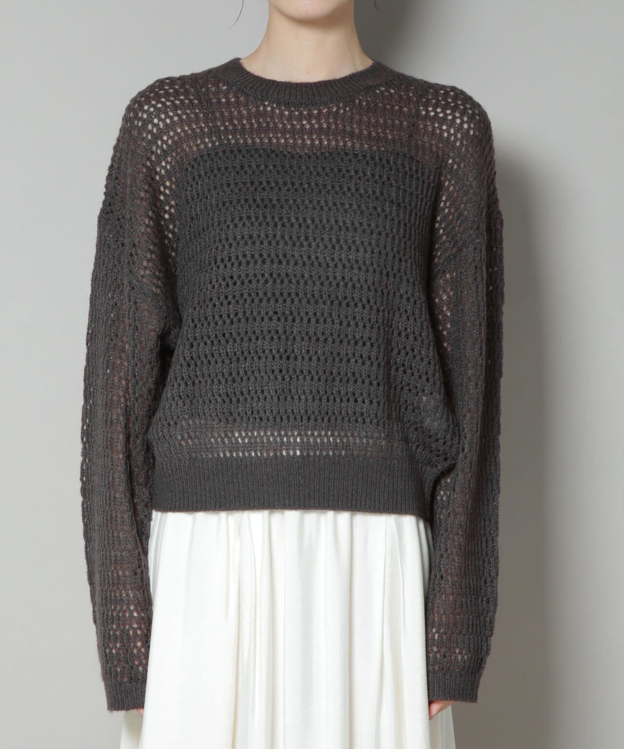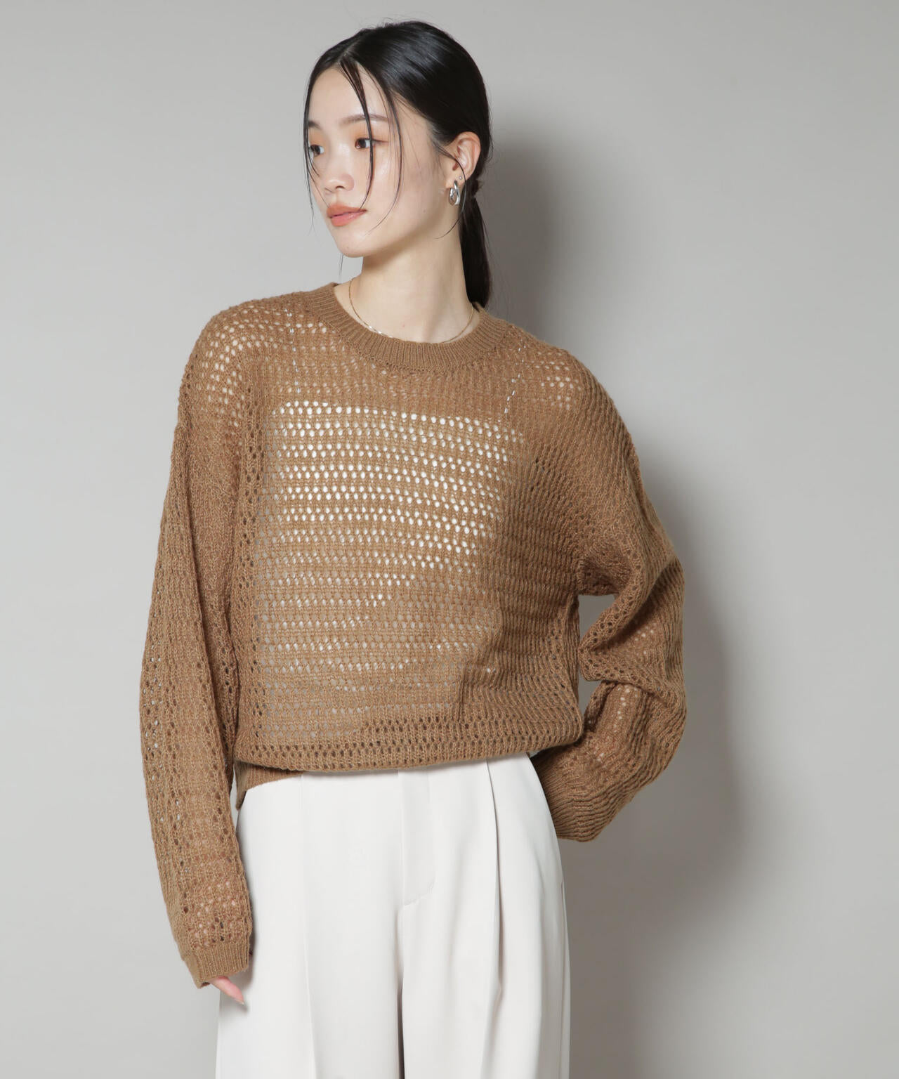 ・合わせるアイテムしだいでロングシーズン着回しを楽しめるメッシュニット