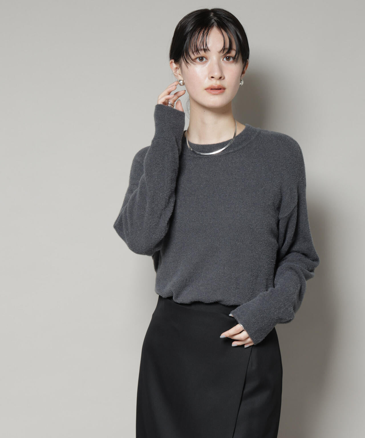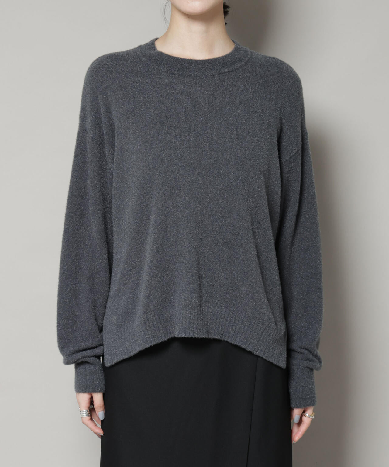 ラメの華やかさと、シャギー素材の可愛らしさを兼ね備えた大人フェミニンなラメシャギーニット