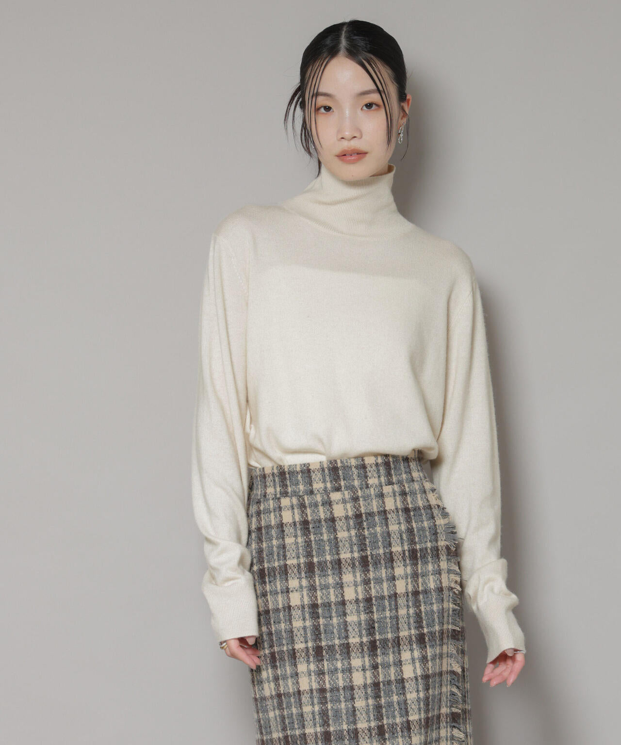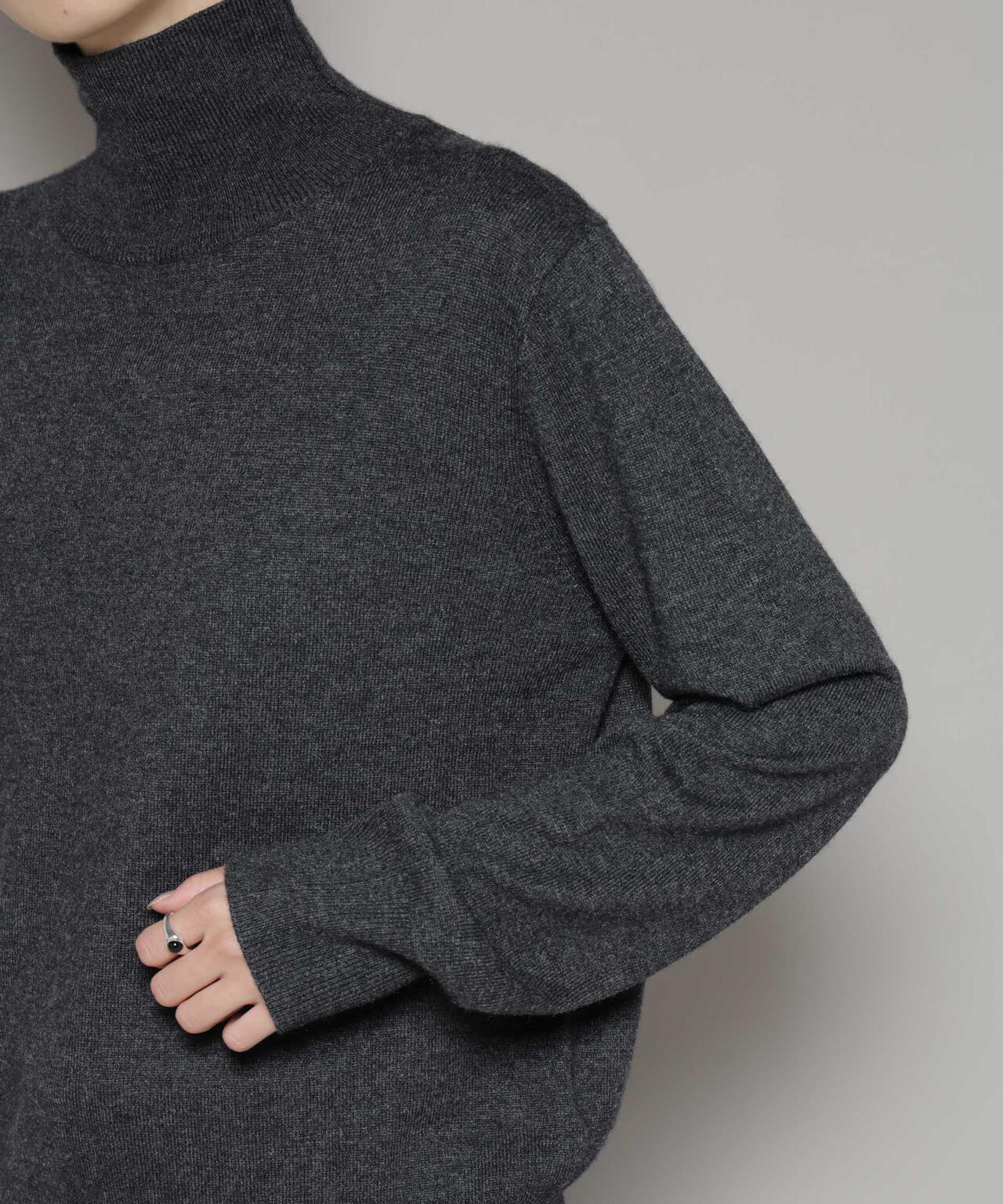 ウールとカシミヤ混の心地良い肌触りが魅力的なタートルネックニット。程よいゆとりのあるサイズ感でレイヤードしやすく、大人の女性にピッタリなアイテムです。