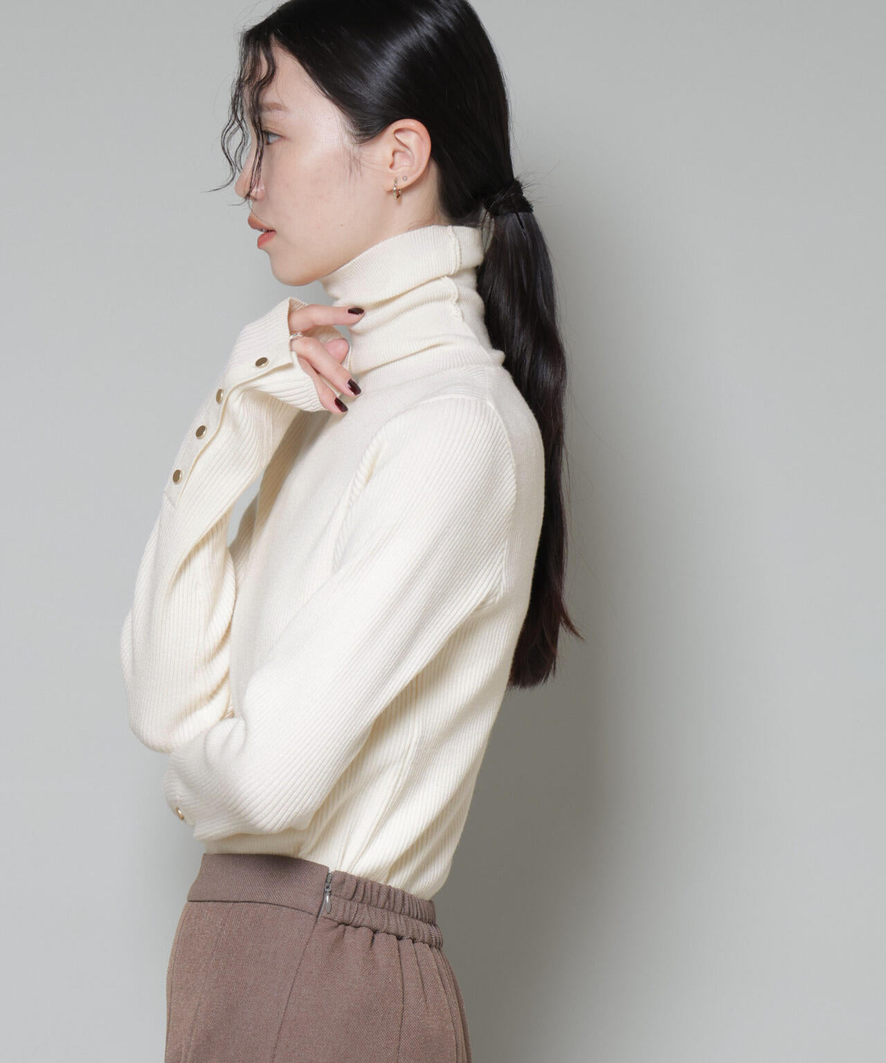 ご自宅の洗濯機で洗えて、チクチクしないもっちりとした素材で仕立てたリブニット。1枚でもレイヤードにも活躍する程よい肉感で、着まわし力も抜群のアイテム。体のラインを拾わないちょうどいいシルエットで体系カバーも叶う一枚です。