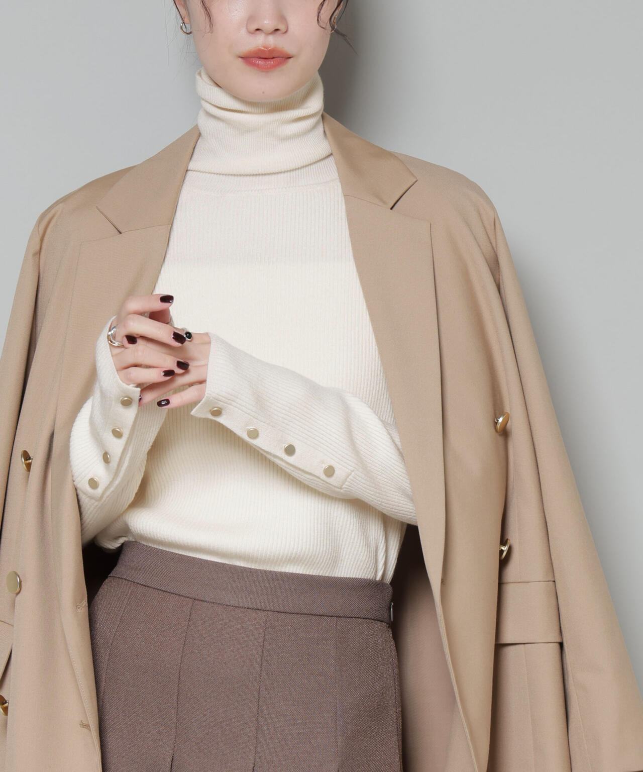 ・ポイントになる袖口のメタル釦でスリット感を出した着こなしもおすすめ
