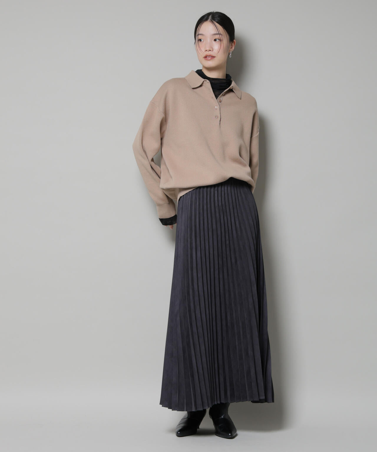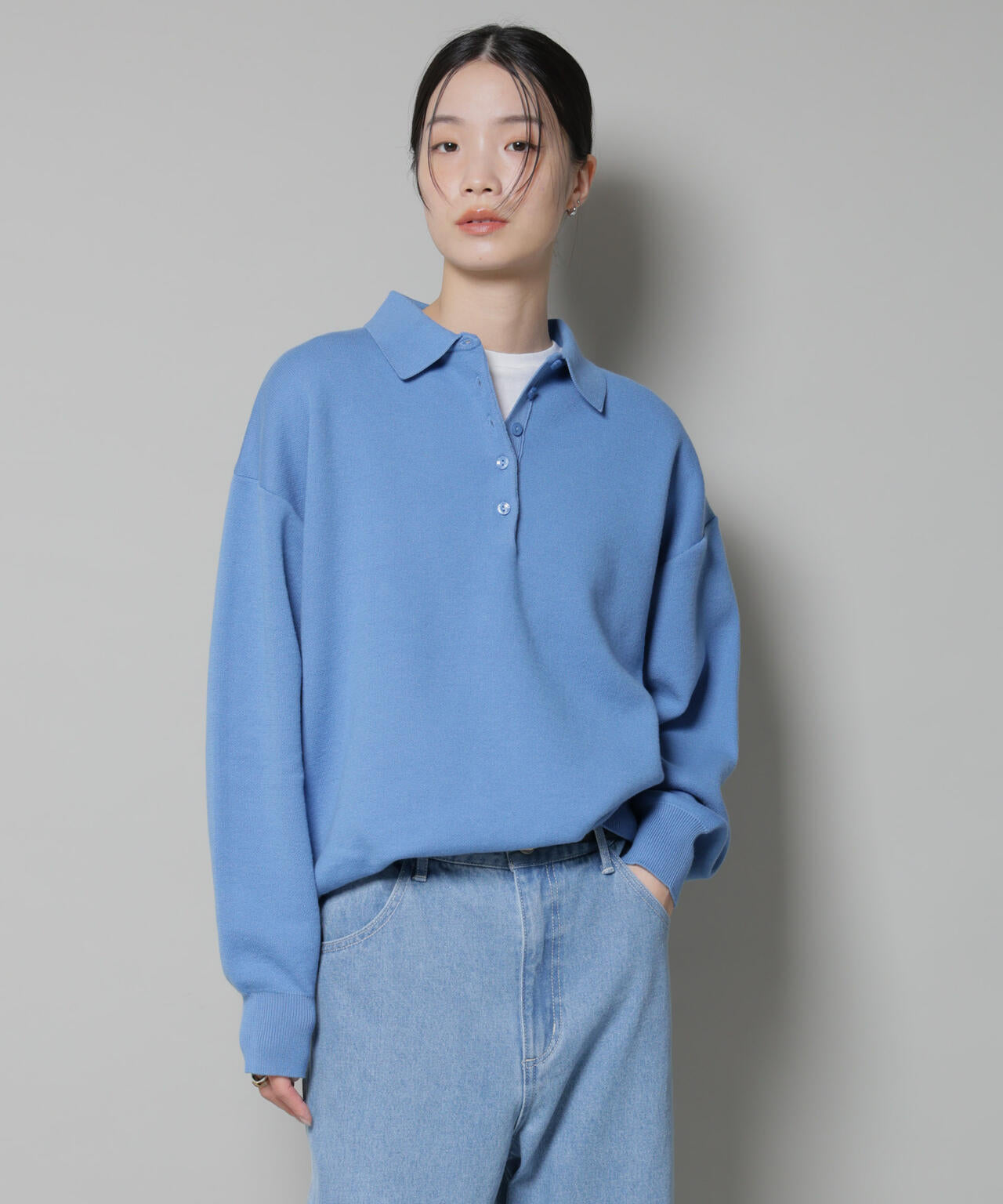 大人カジュアルにぴったりのスウェット感覚でさらっと着れるプルオーバーニット。トレンド感のある衿付きデザインで、一枚ではもちろんシャツやブラウスをレイヤードしたこなれ感あるスタイリングもおすすめです。