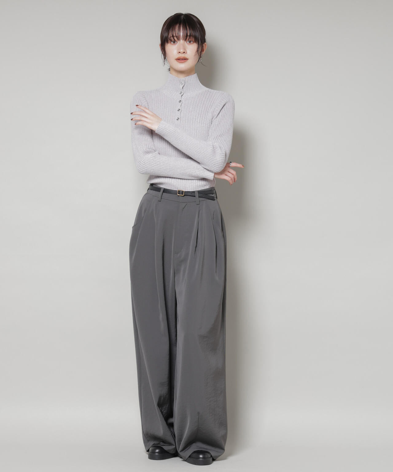 ・ワイドパンツやスラックス等ときれいめカジュアルに合わせたスタイルがおすすめ