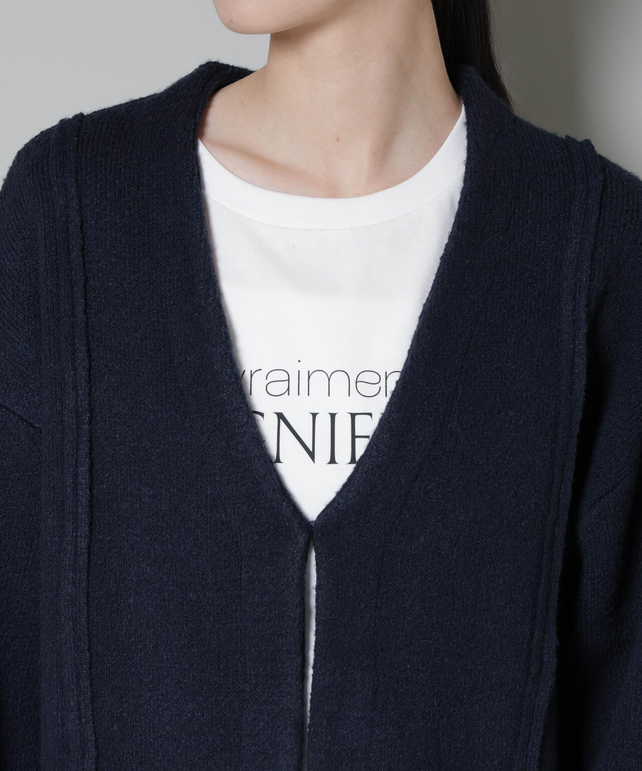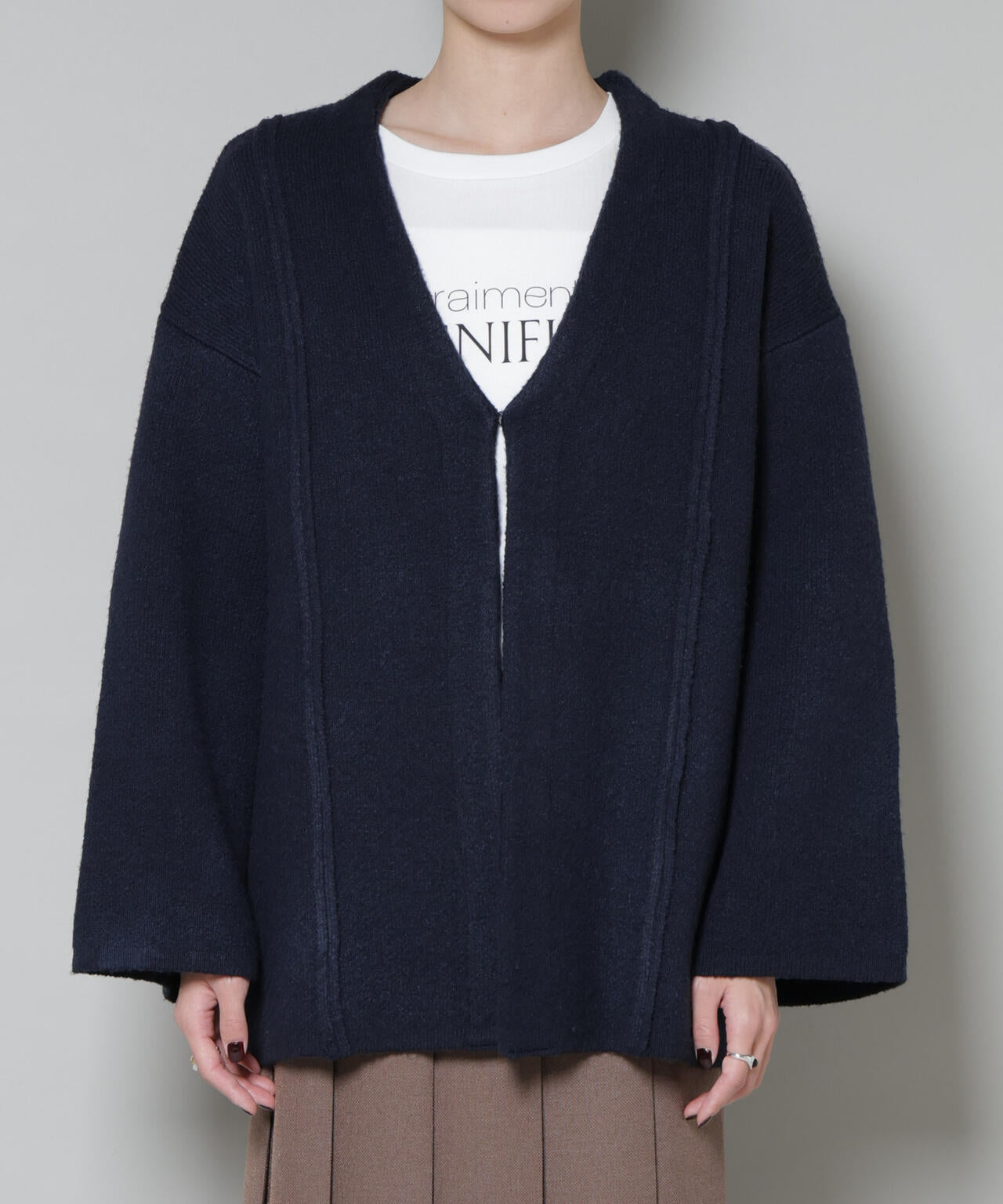 柔らかく軽さのある風合いで、カーディガン感覚で羽織れるニットジャケット