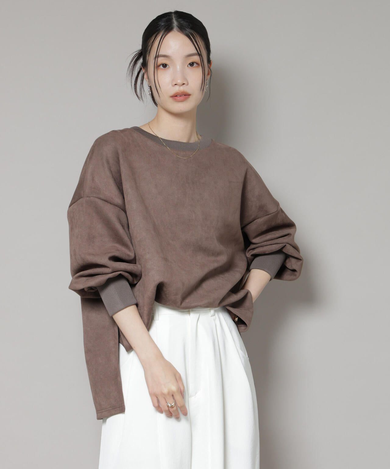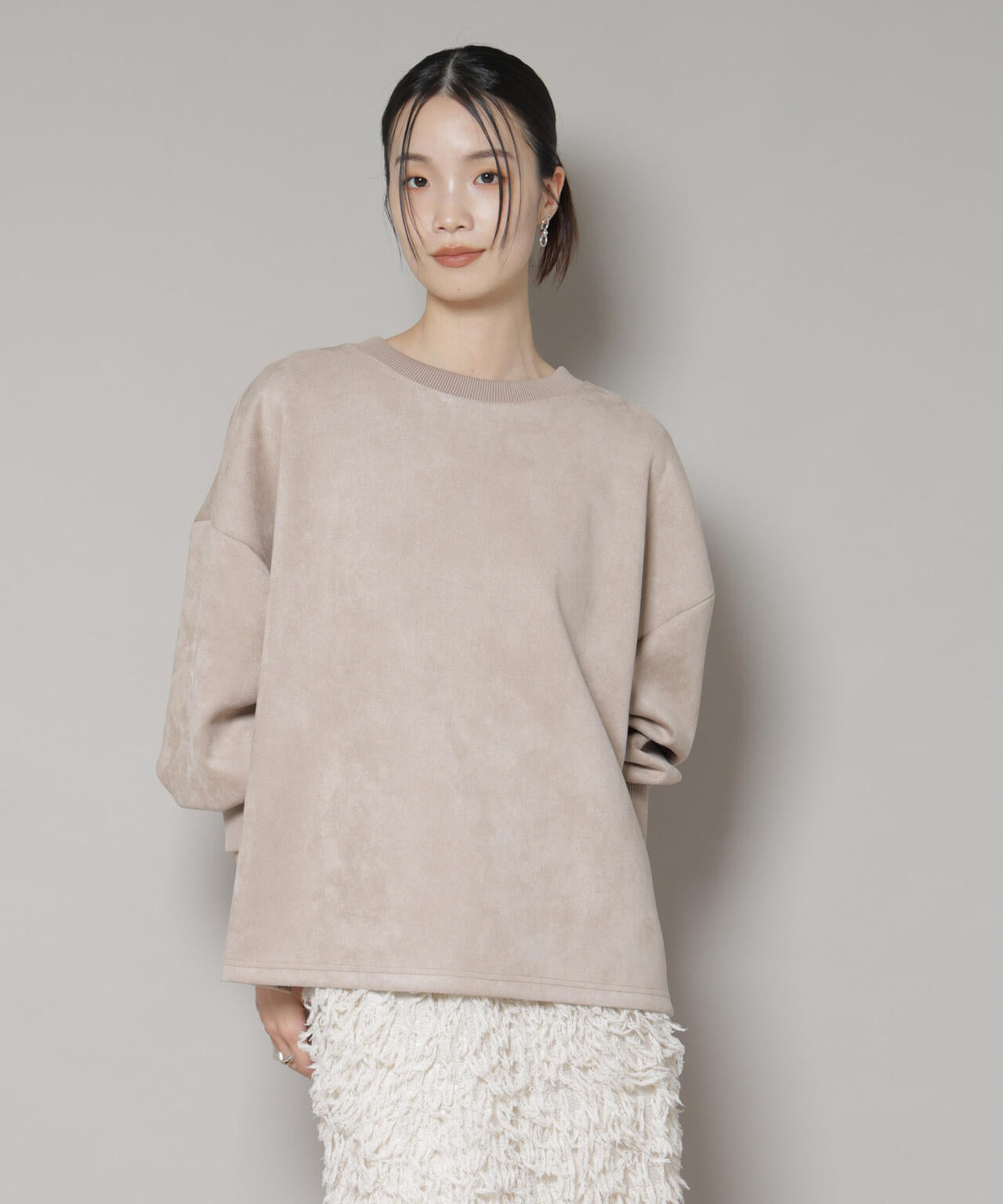上品な雰囲気のフェイクスエード素材で仕立てたプルオーバートップス