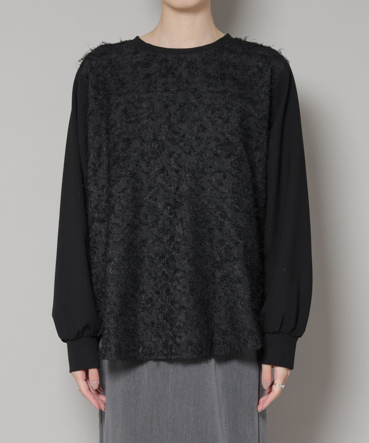 ジャガードとカットジョーゼットのコンビ素材でデザインされたプルオーバー