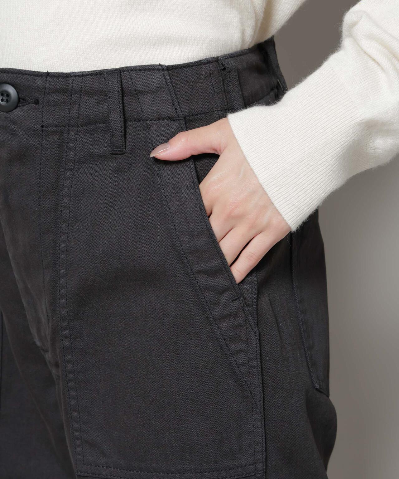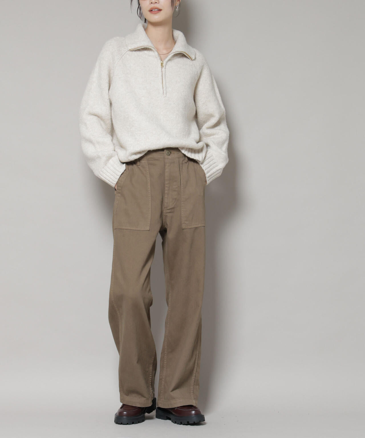 パッチポケットがアクセントになったベイカーパンツ。腰回りのサイズ感をすっきりさせつつストンと落ちるワイドストレートシルエットで、デイリーに使いやすいデザインに仕立てた一品です。