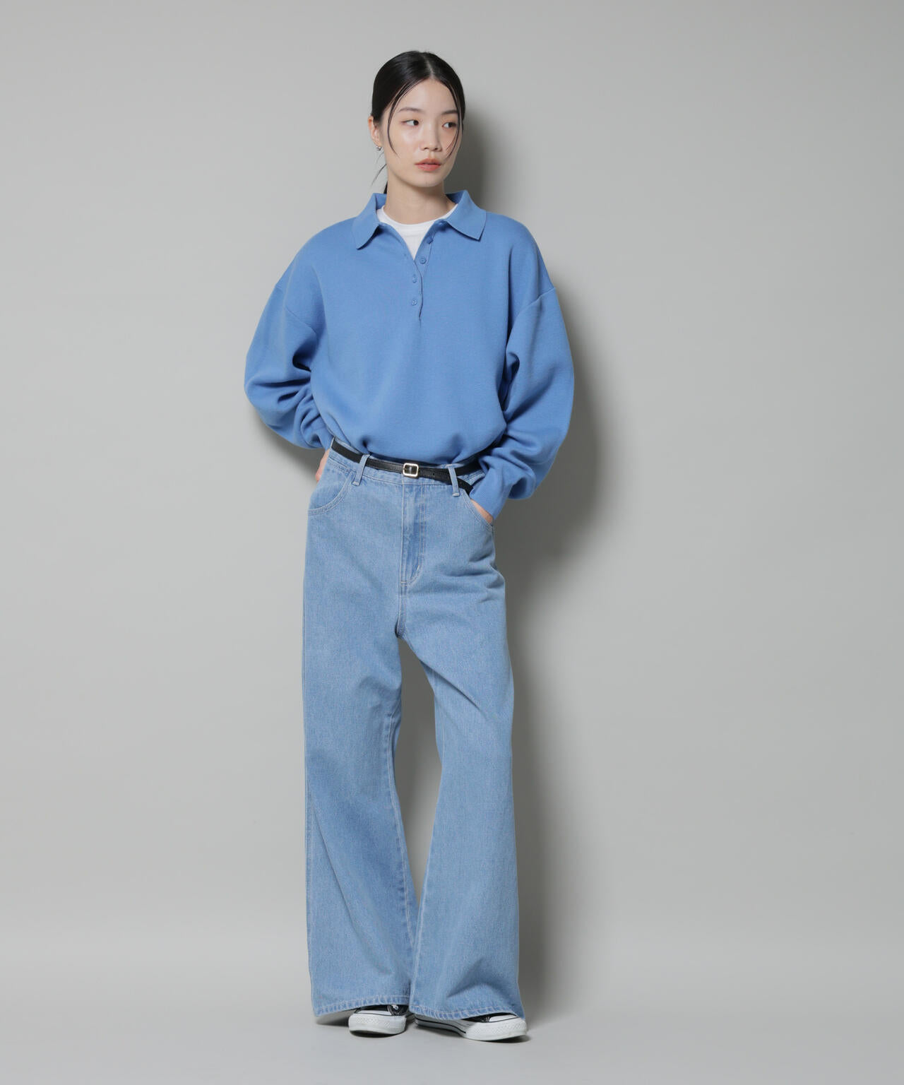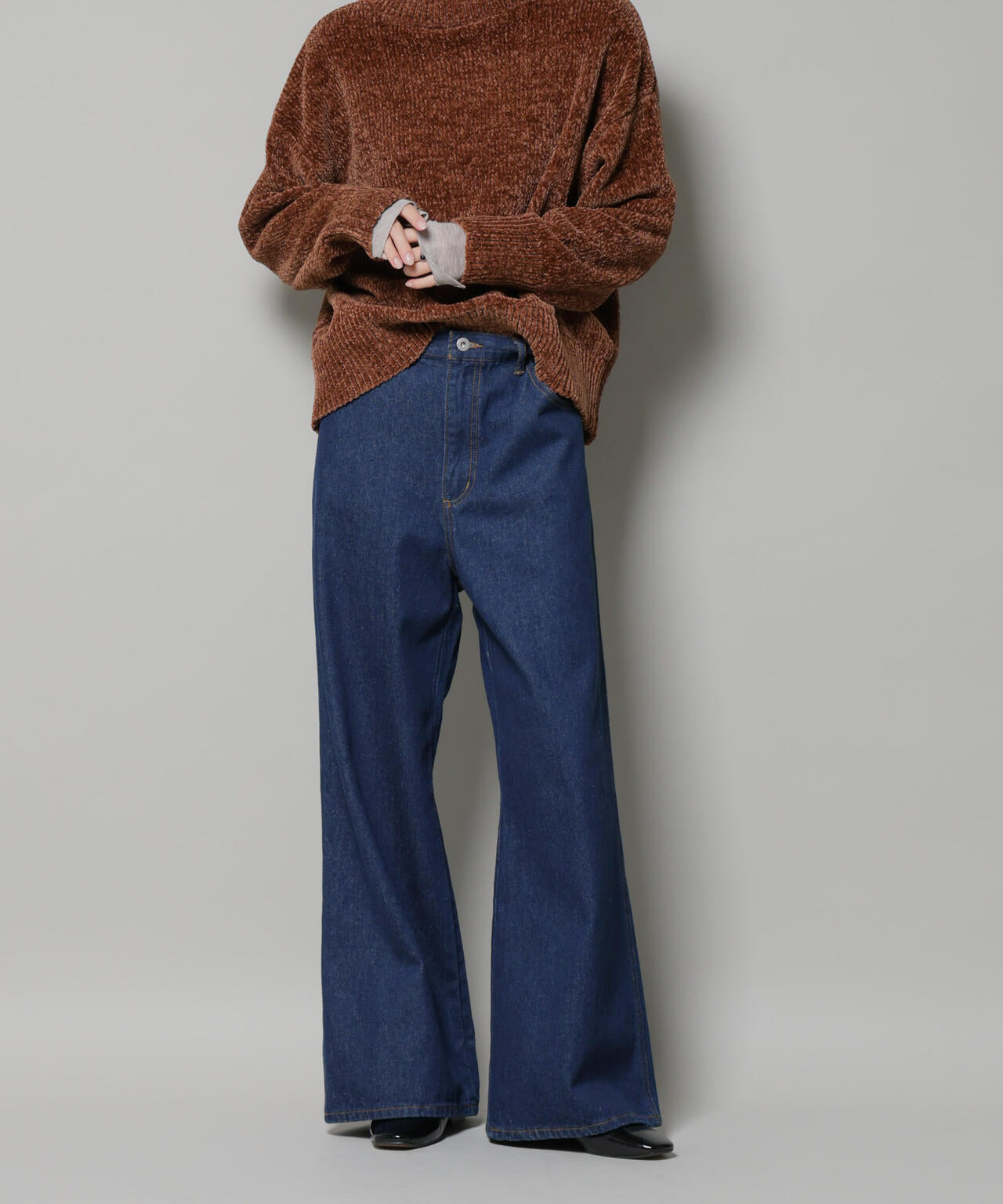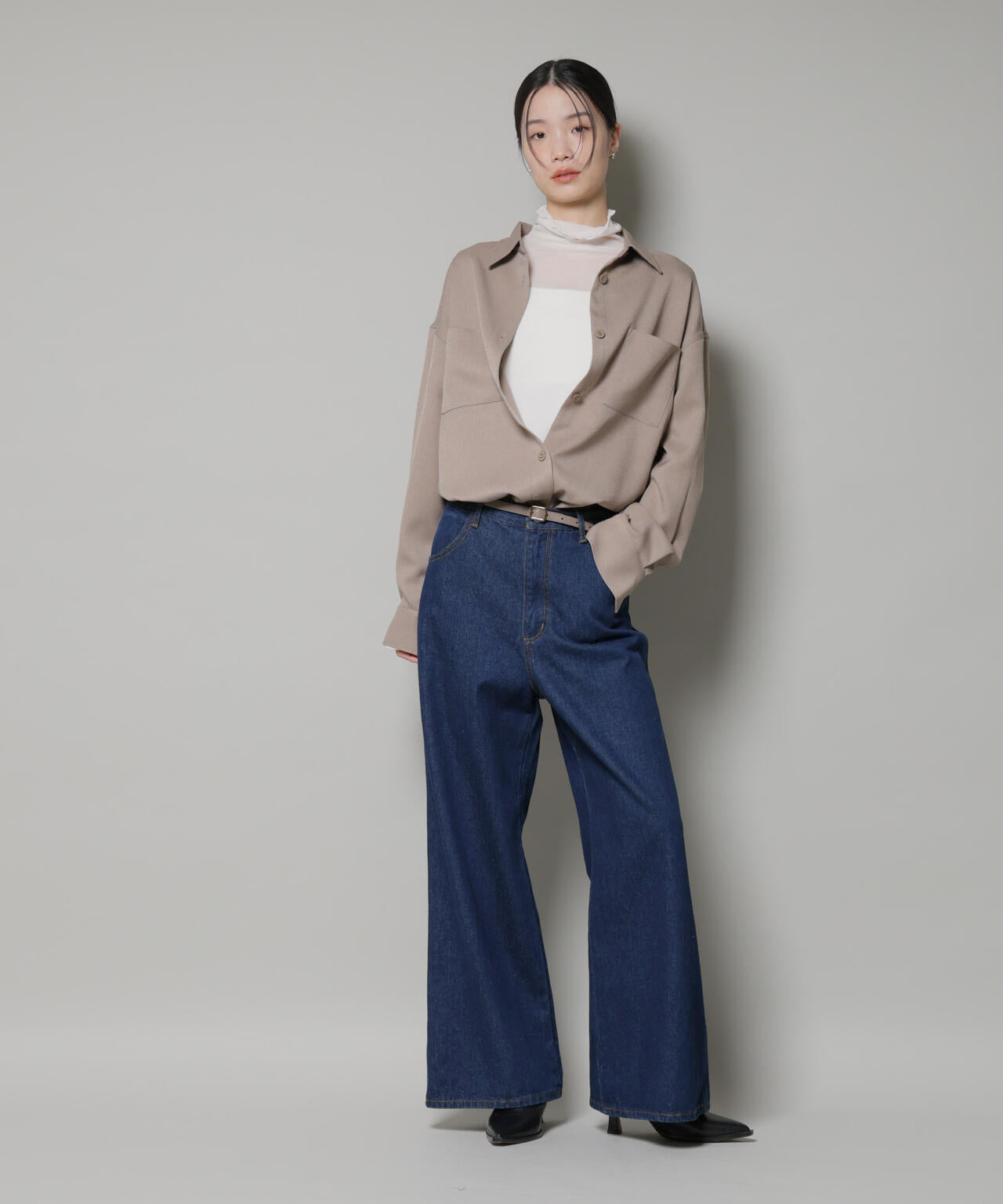 スタイルアップ効果も期待できるワイドシルエットのデニムパンツ