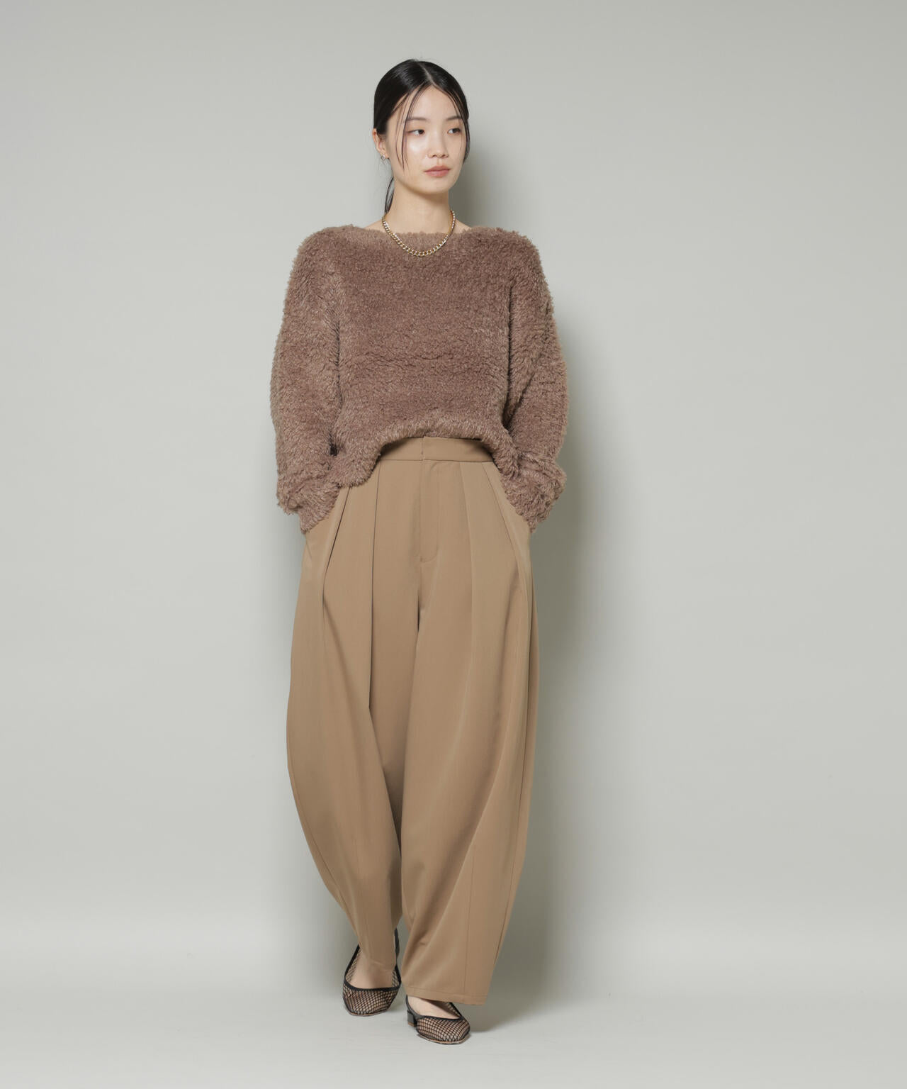 ふんわりと膨らんだコクーンシルエットが特徴のパンツ