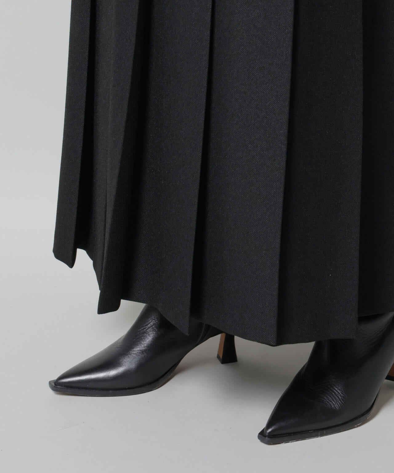 太幅のプリーツが今年らしい印象のロングプリーツスカート