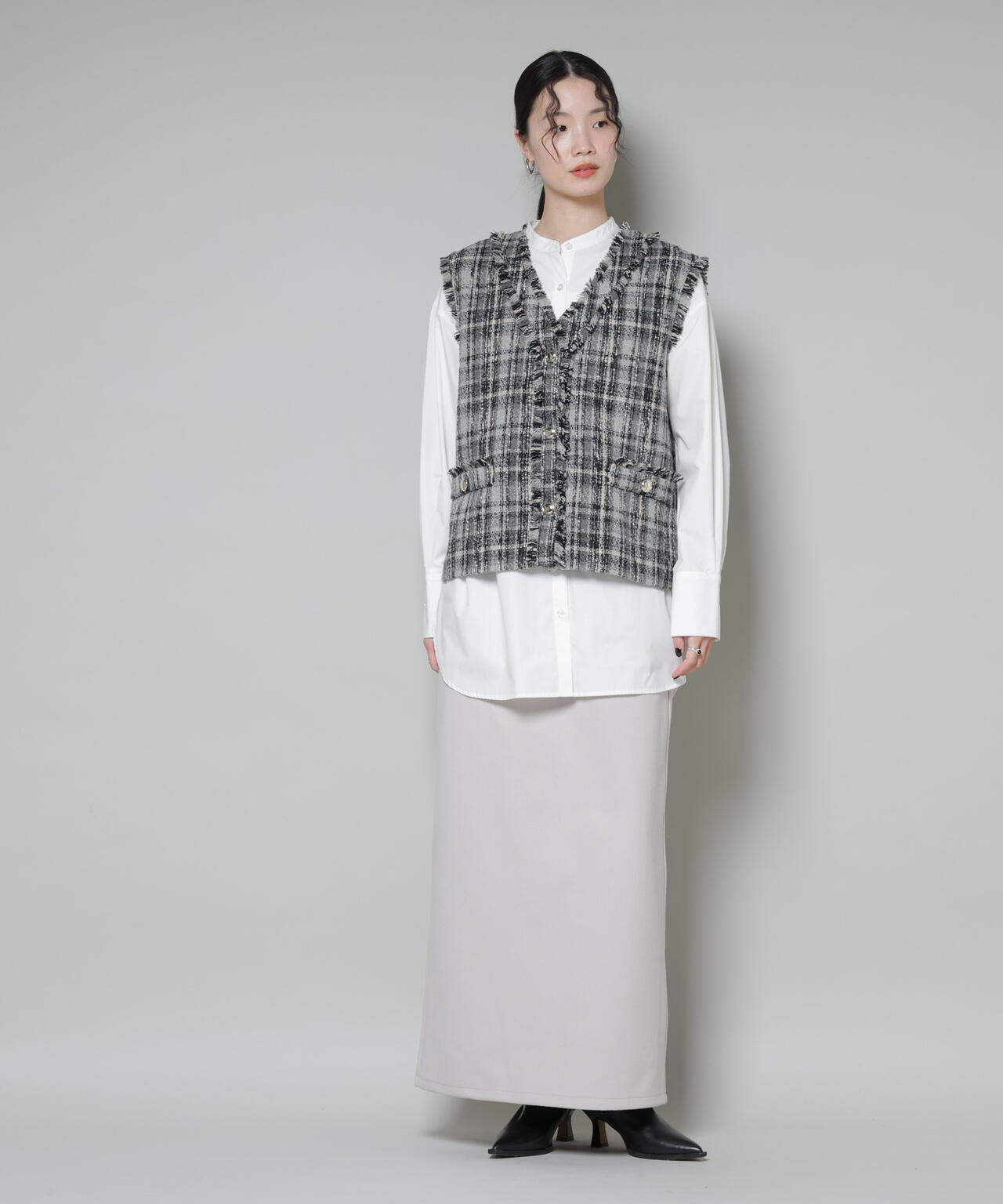 着回し力抜群な、シンプルでキレイ目なシルエットのナロースカート。シンプルでどんなトップスにも万能に合わせやすく、ワードローブに追加しておくと重宝しそうなアイテムです。