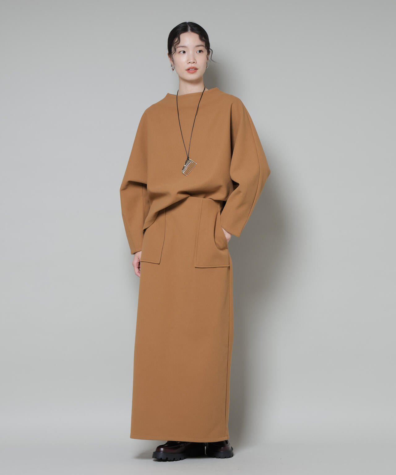 ・6735220315 ソフトメルトンジャージータックスリーブモックネックトップス(セットアップ可)