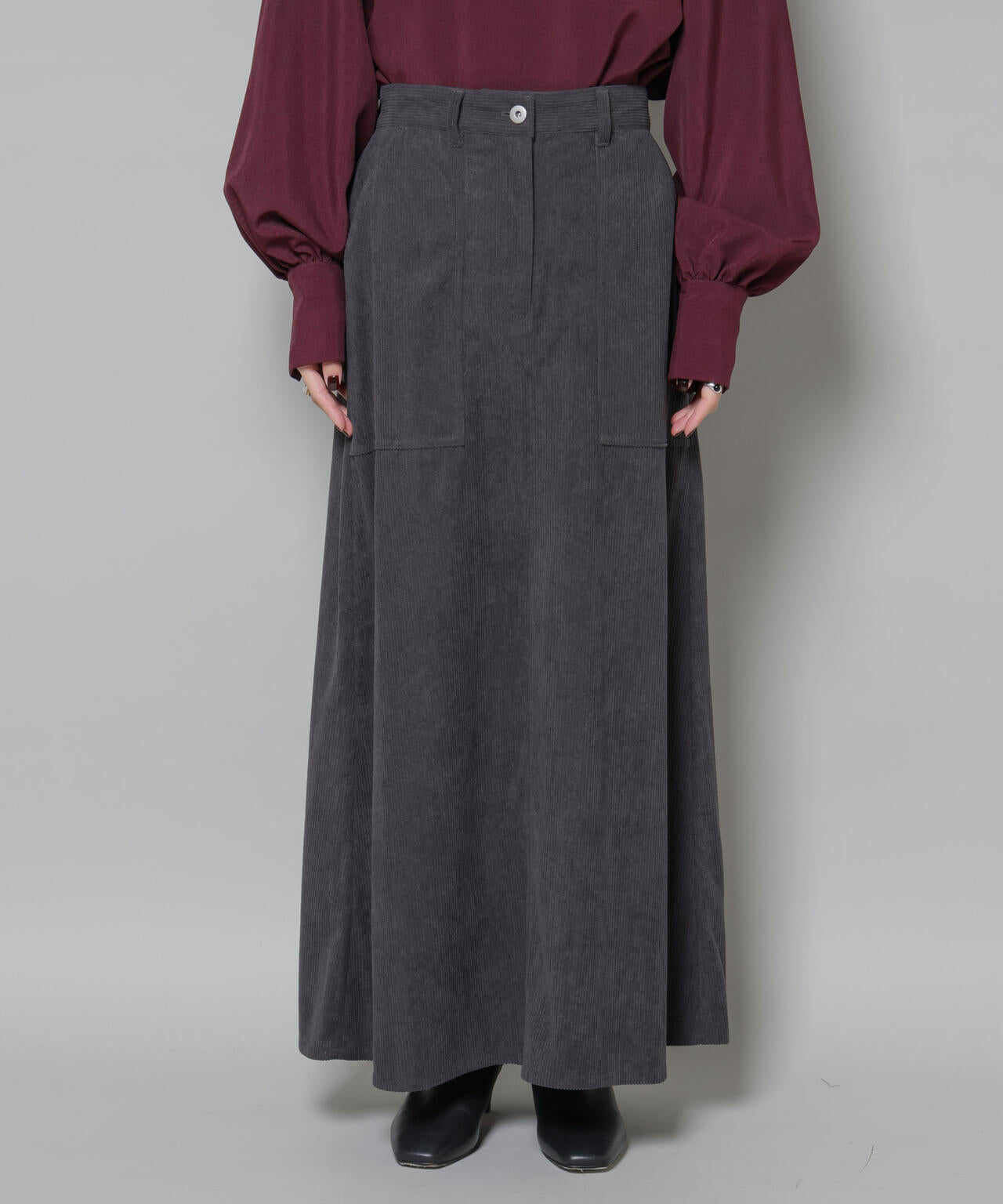 柔らかな細畝コーデュロイ素材を使用したロングスカート