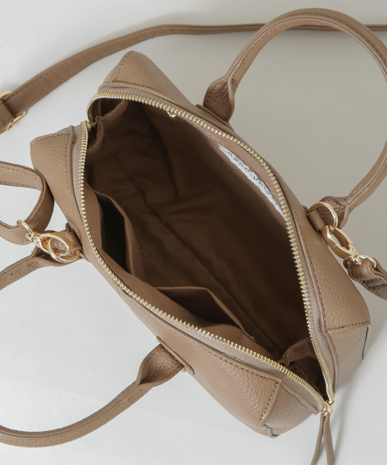 コロンとコンパクトなサイズ感が上品のミニボストンバッグ。着脱可能なショルダー付きで、ショルダーバッグとしてもハンドバッグとしても2wayでご使用いただけるひと品です。