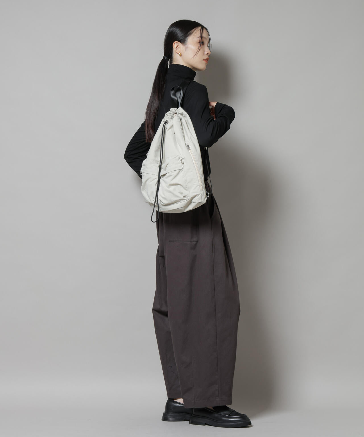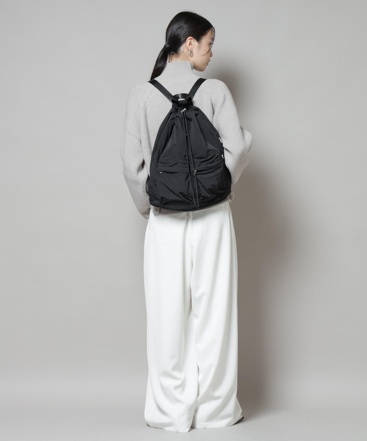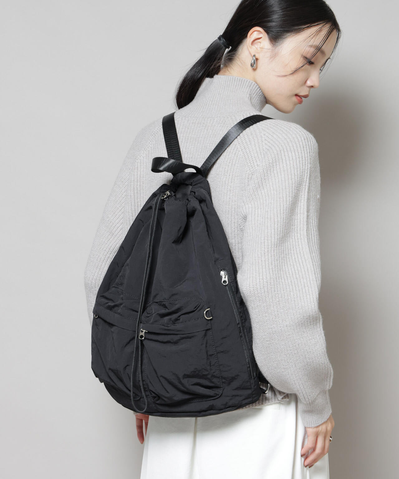 シーズンレスで活躍する、シンプルかつ実用的なドロストバッグ