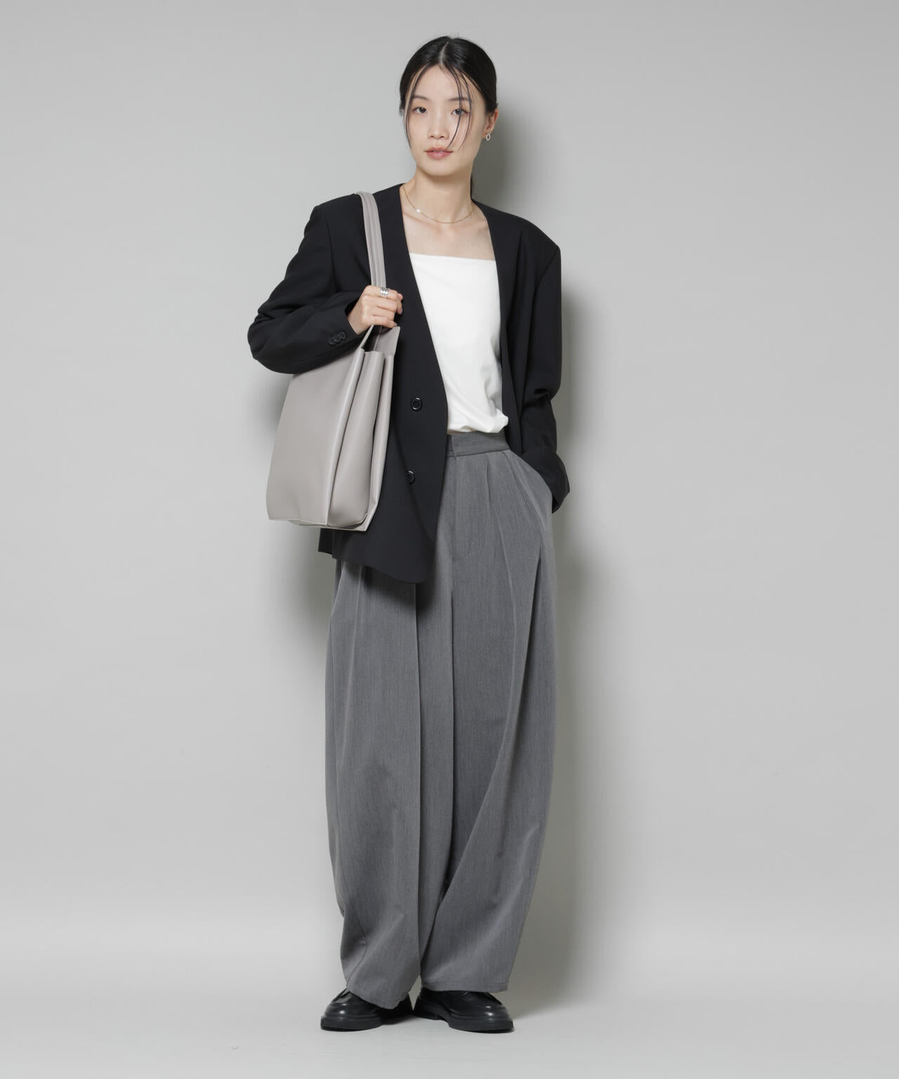 高見えするシボが上品なフェイクレザーに、ディテールを削ぎ落した佇まいが高級感を演出