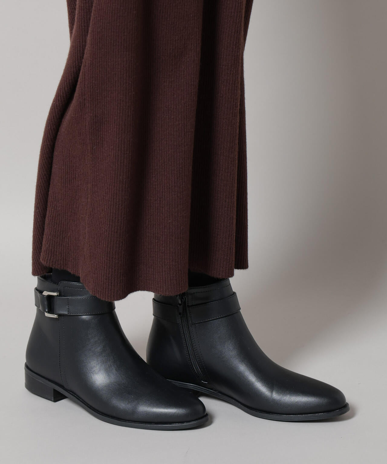 バックルベルトモチーフのさりげないアクセントが効いたショートブーツ