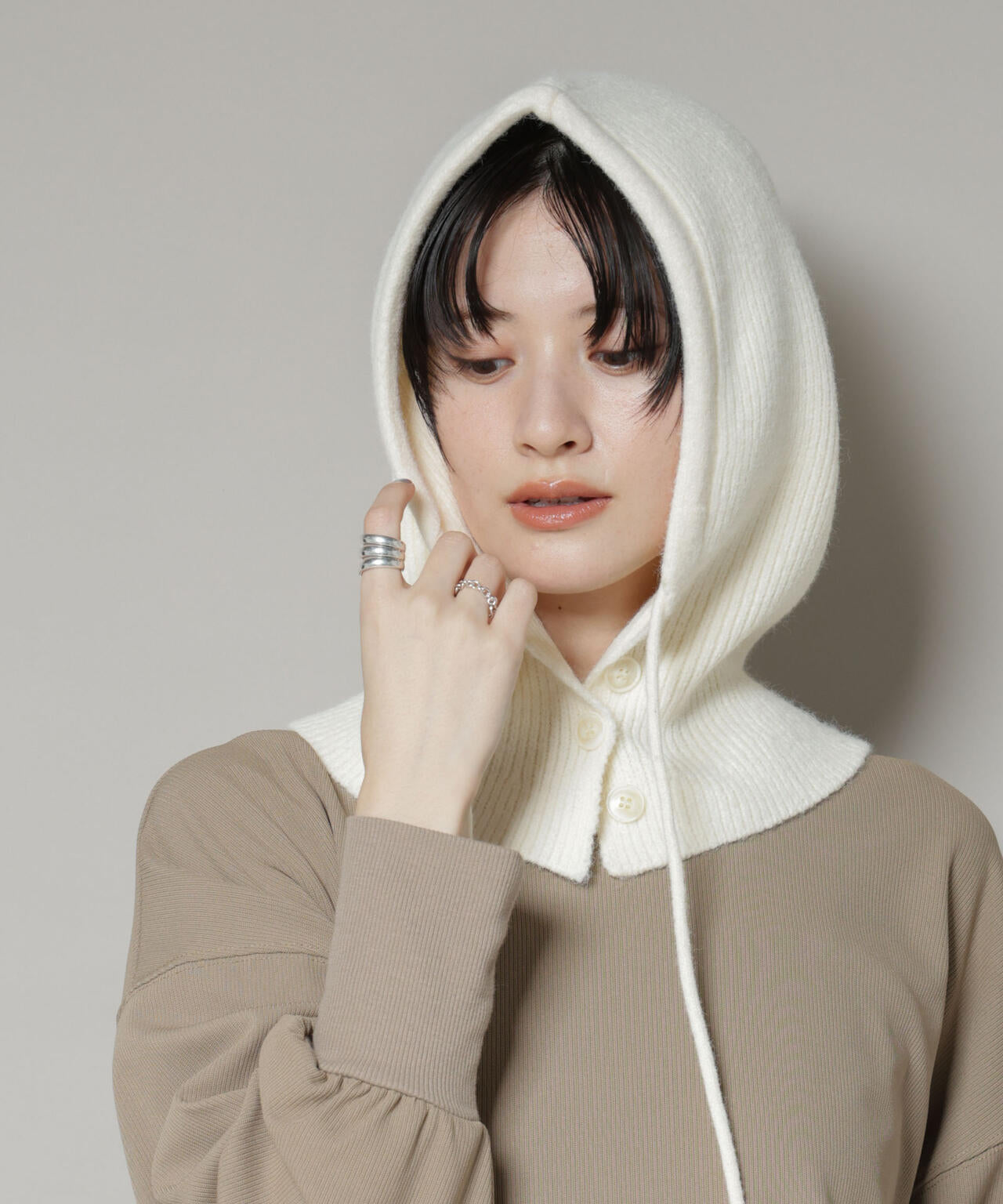 スタイリングに取り入れるだけでこなれ感が出るバラクラバニット。フード部分を被ったり、釦を開けて紐を結んだり、ネックウォーマーとして着用するなど、アレンジを楽しめる万能アイテムです。