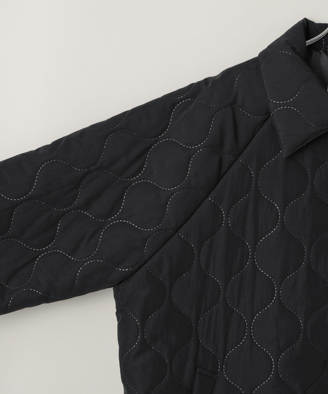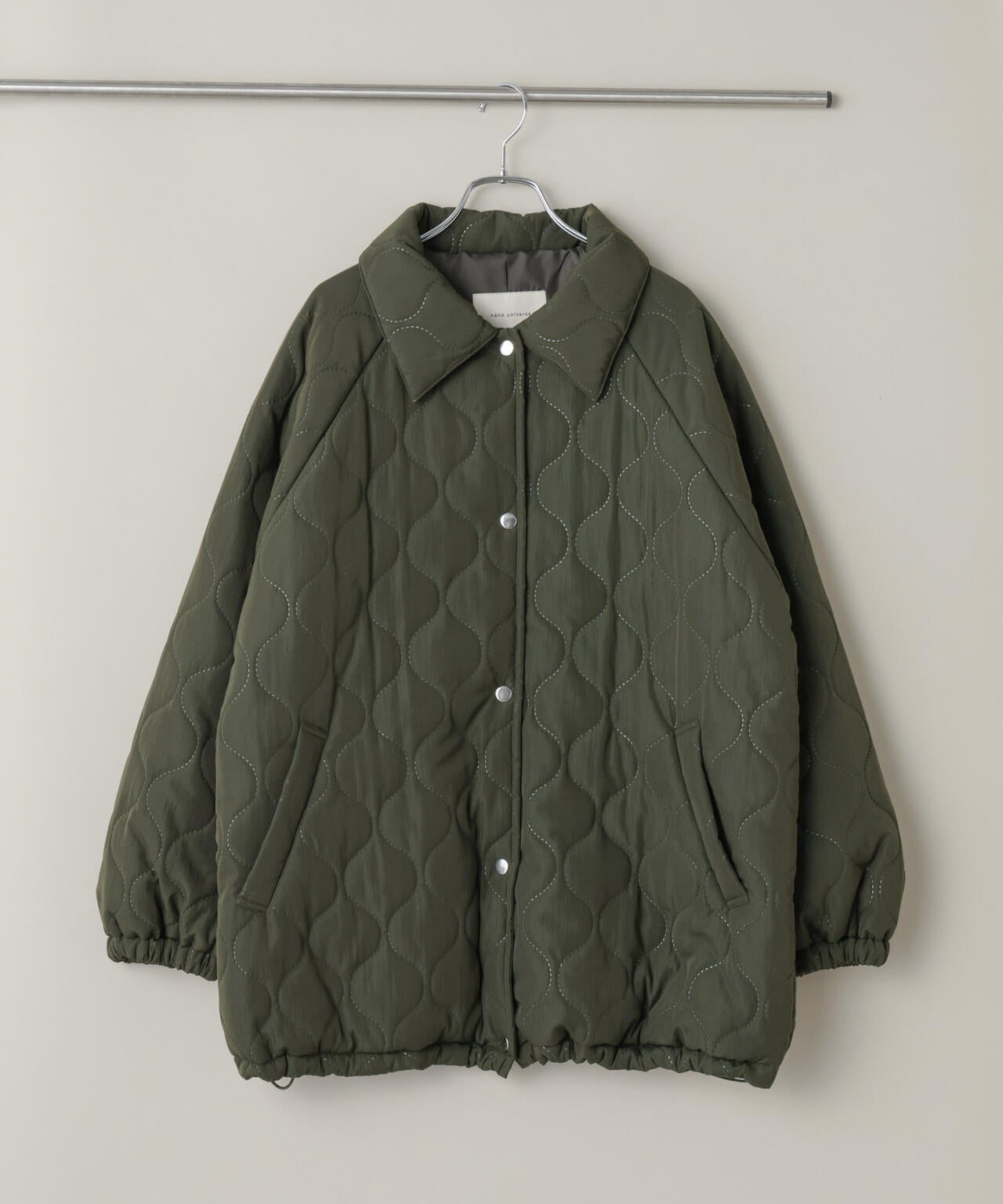 ひょうたん柄の圧着キルトが目を惹く、表情豊かなラグランミドルコート。ボリューム感のある丸みのあるシルエットが、カジュアルさを抑え、フェミニンで女性らしい雰囲気に。裾のドローコードでシルエット調整も可能で、その日の気分やスタイリングに合わせてアレンジが楽しめます。