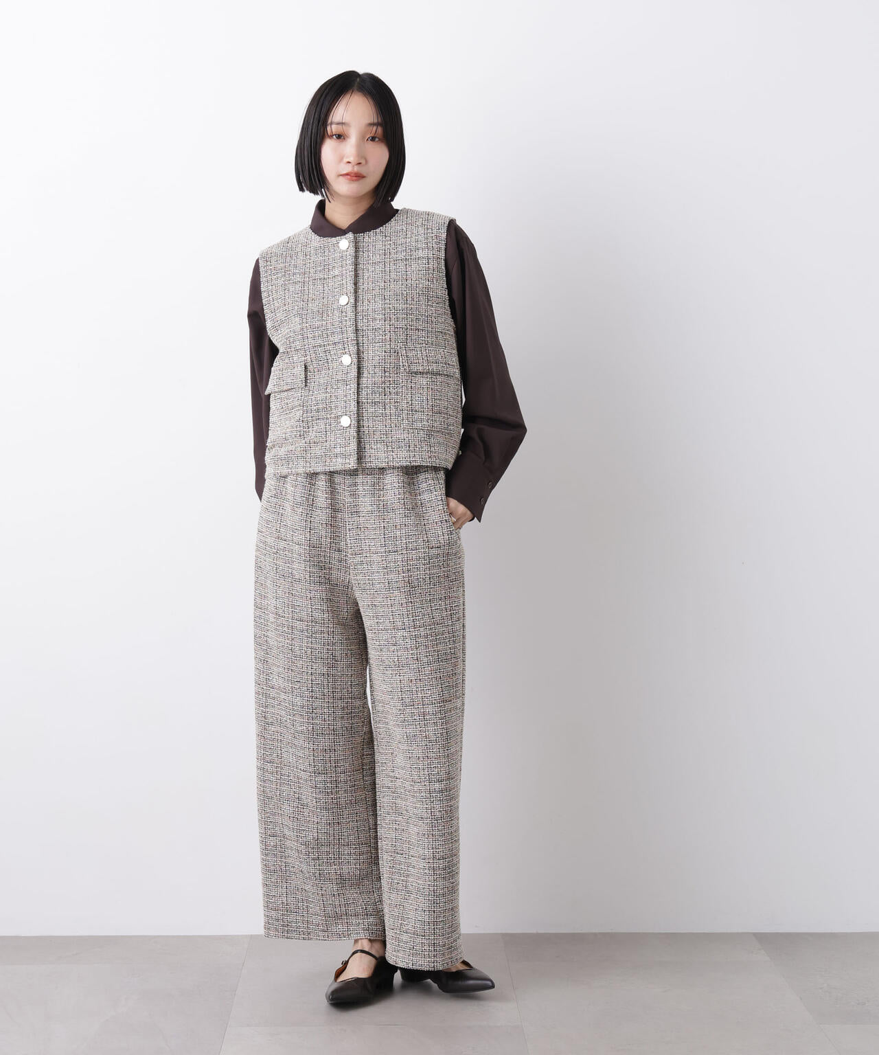 ・6736127310 カットツイードドロストワイドパンツ(セットアップ可)