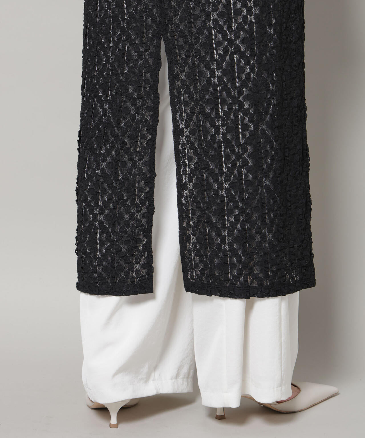 フェミニンなレイヤードスタイルを楽しめるカットレースのマキシワンピース