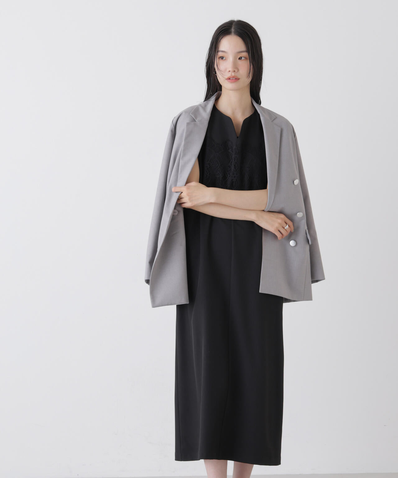 オフィスからオケージョンまで、上品なキレイ目スタイルが叶うノースリーブワンピース。胸元のレース切り替えが華やかな印象ながらも、落ちついた色味で着回しやすく、幅広いシーンでサマになる1着です。