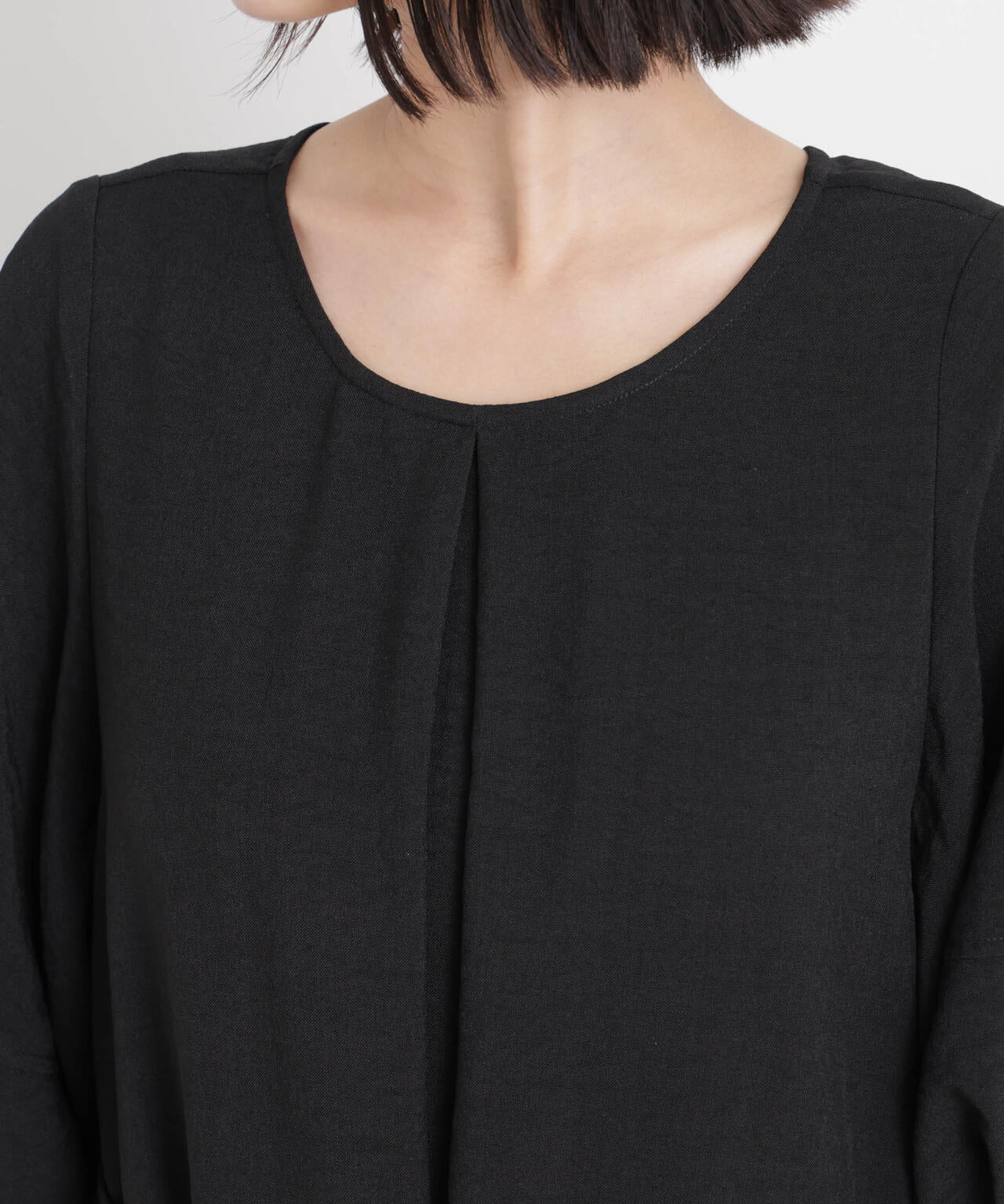 • タックデザインのクルーネックと、ねじりデザインの深Vネックの前後2way