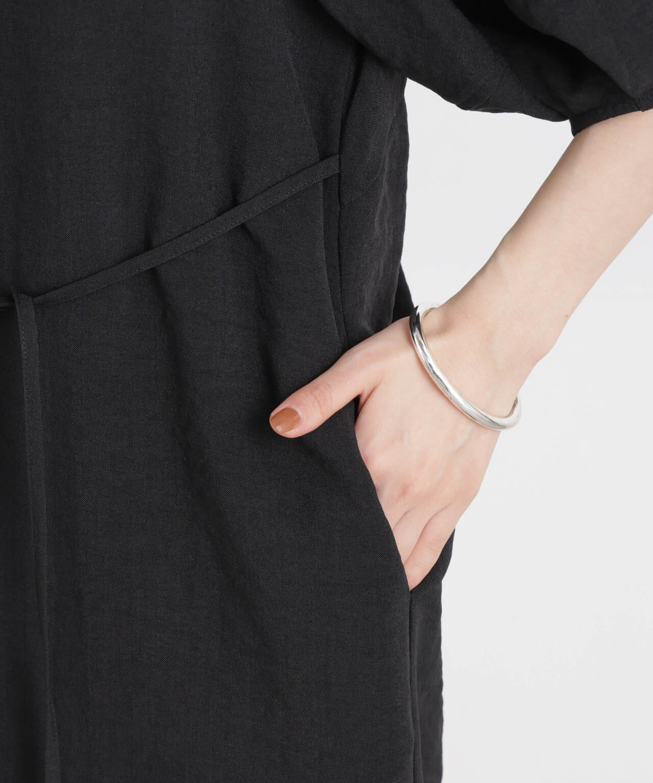 ・ポイントになる細身の共地ウエストリボン