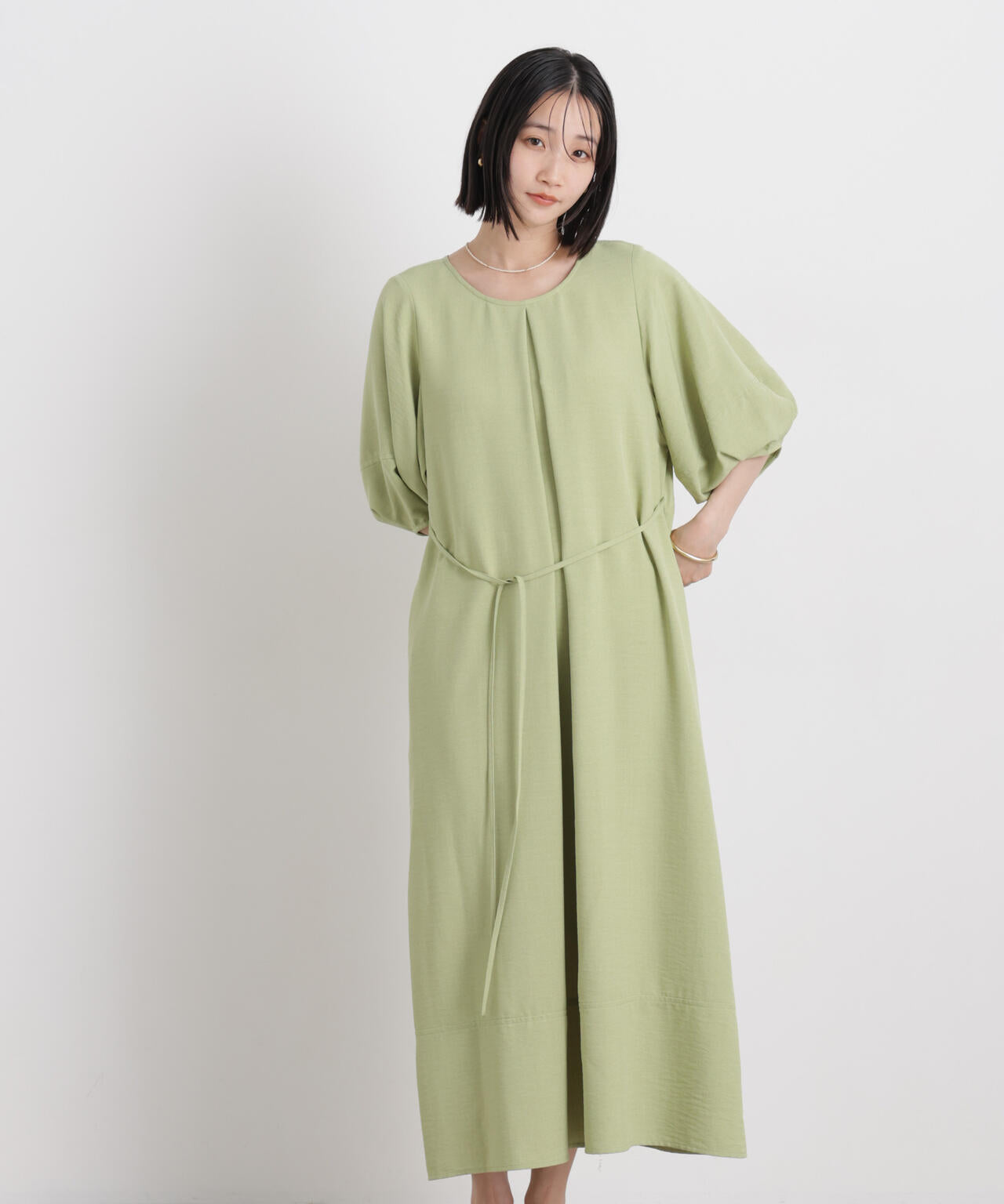 多機能リネンライク前後2wayランタンスリーブワンピース