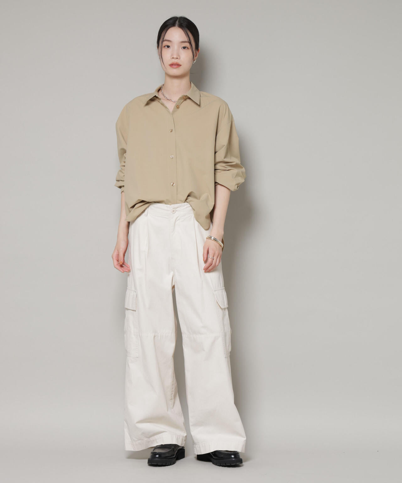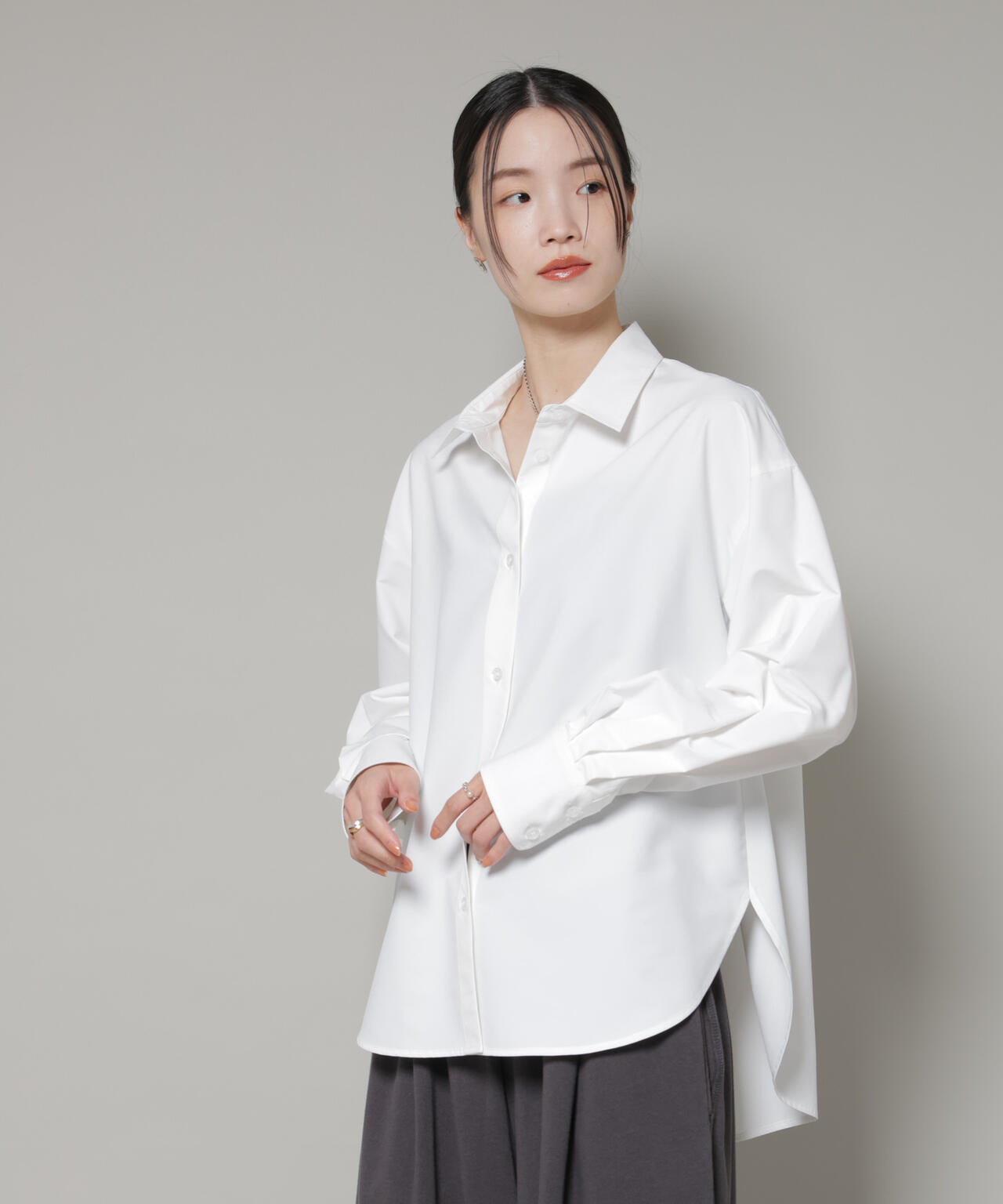 オンオフ問わず着回せる、品の良いベーシックシャツ。しなやかでハリのある上品な素材が、女性らしく柔らかな雰囲気を演出してくれるアイテムです。