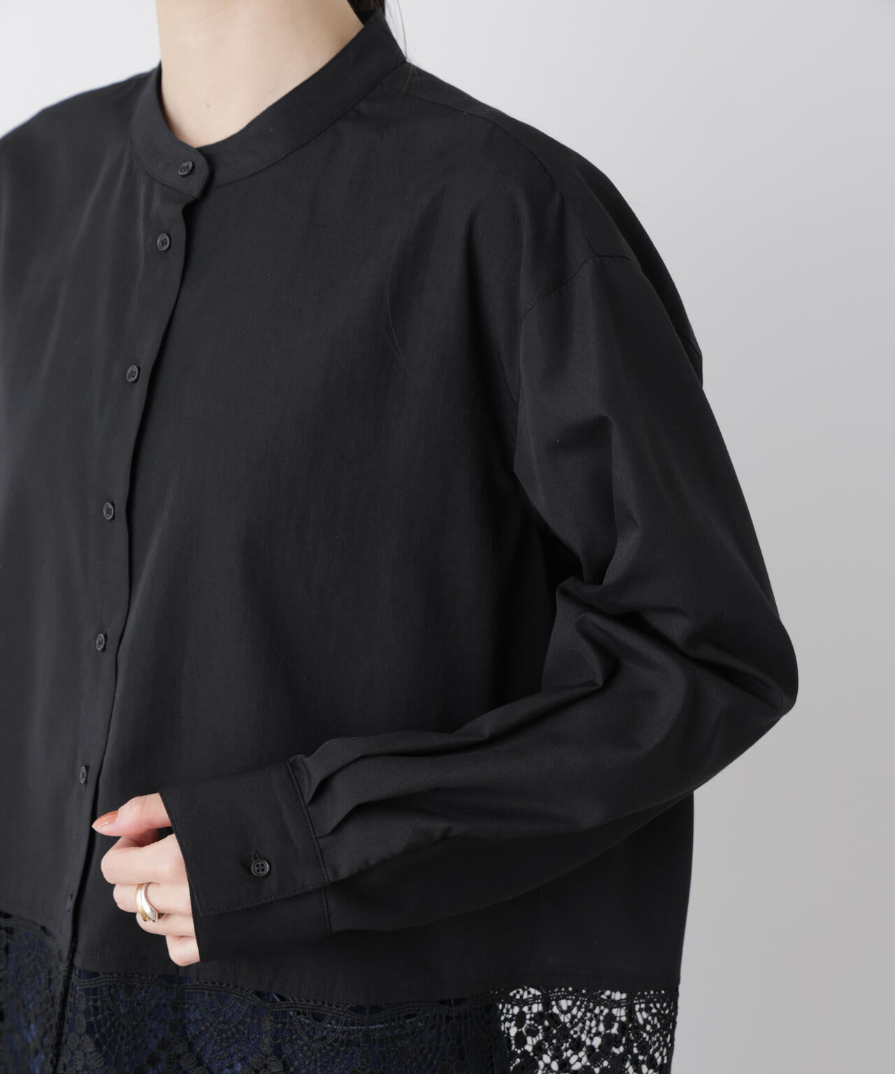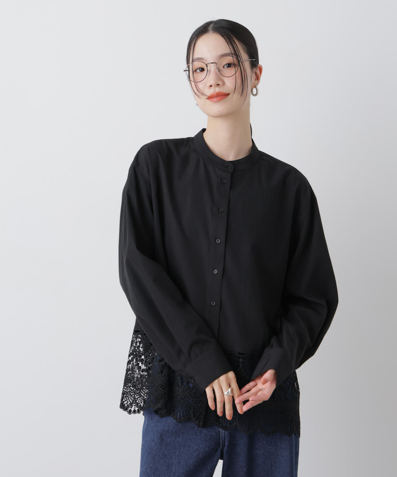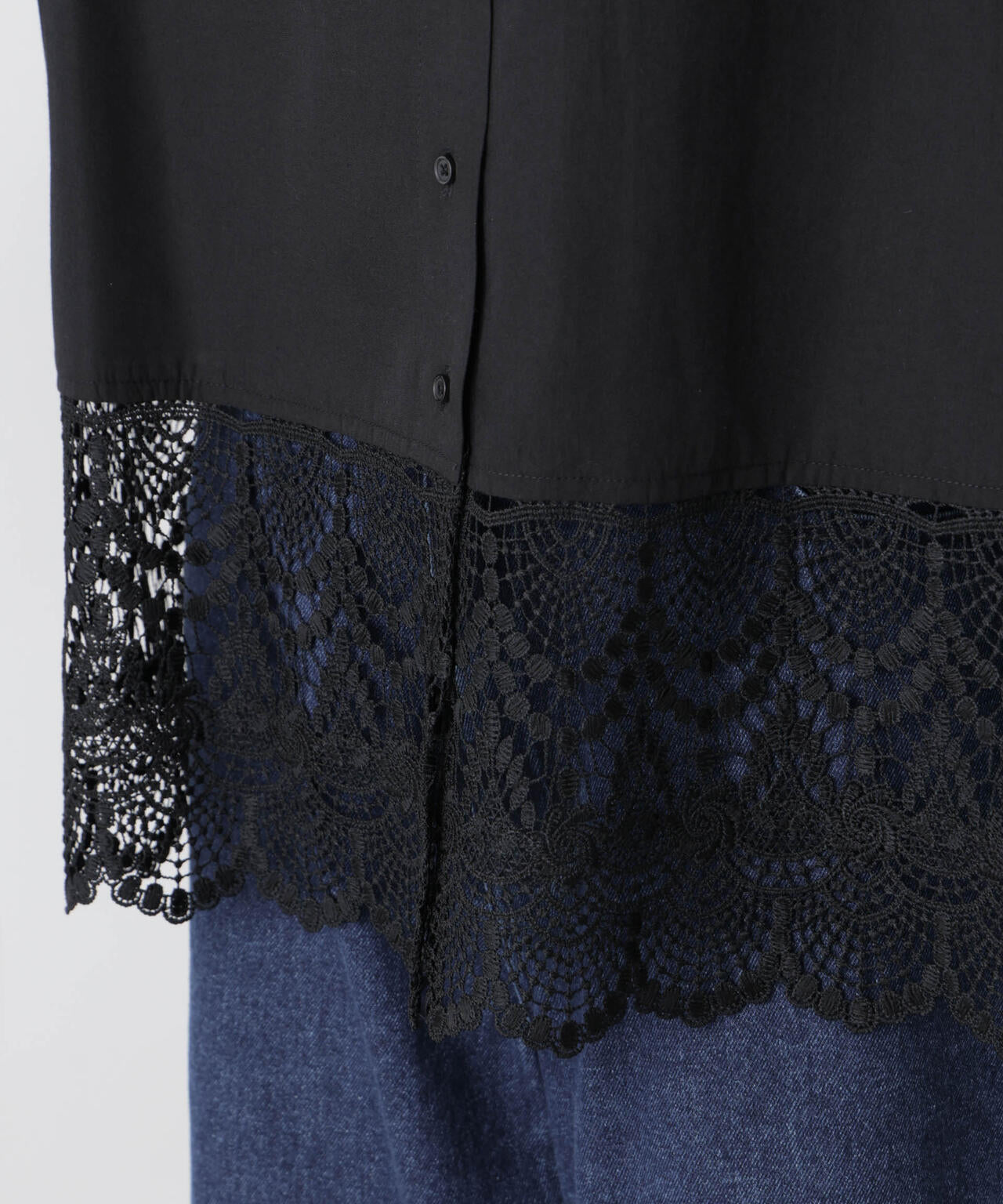 シンプルながら、女性らしさを引き立てるデザインシャツ。裾にあしらった繊細で華やかなレースがアクセントとなり、ややオーバーサイズのシルエットが抜け感のある着こなしを演出。春夏はもちろん、秋口の羽織やジャケットのインナーとしても活躍するロングシーズン使えるアイテムです。