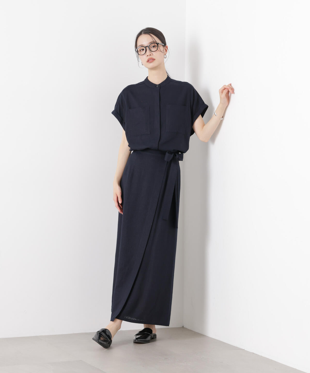 6736130307 多機能リネン混ラップ風サイドリボンスカート(セットアップ可)