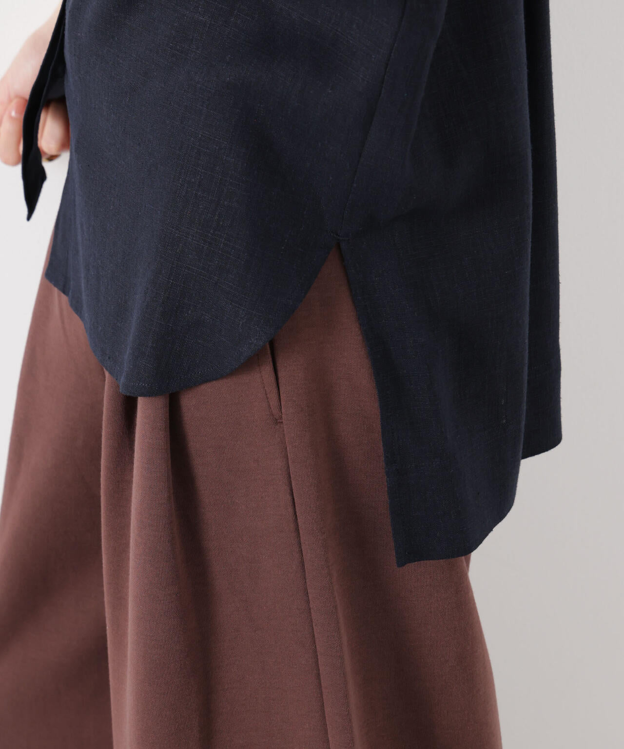 • フロントのみインもできるサイドスリット入りの前後差丈