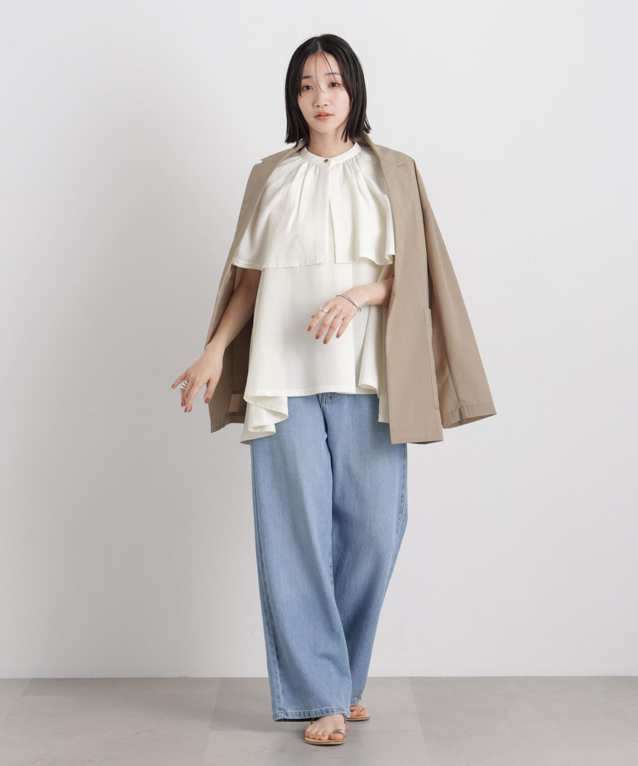 ・衿を取り外して着こなしの変化を楽しめる、2WAYブラウス