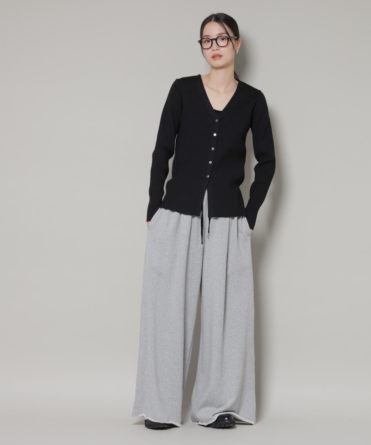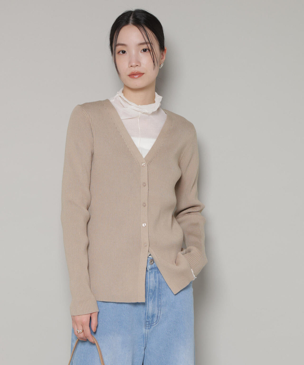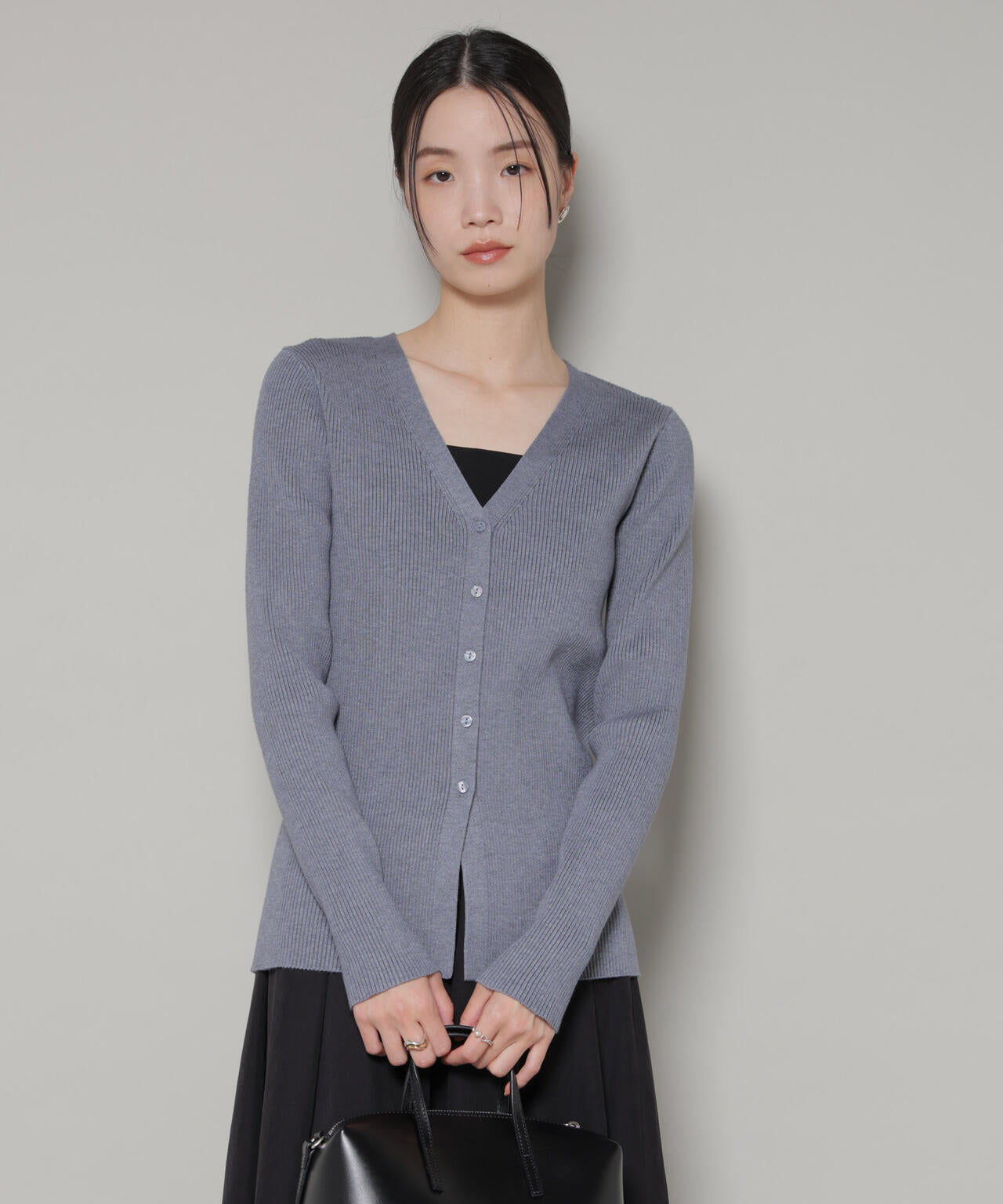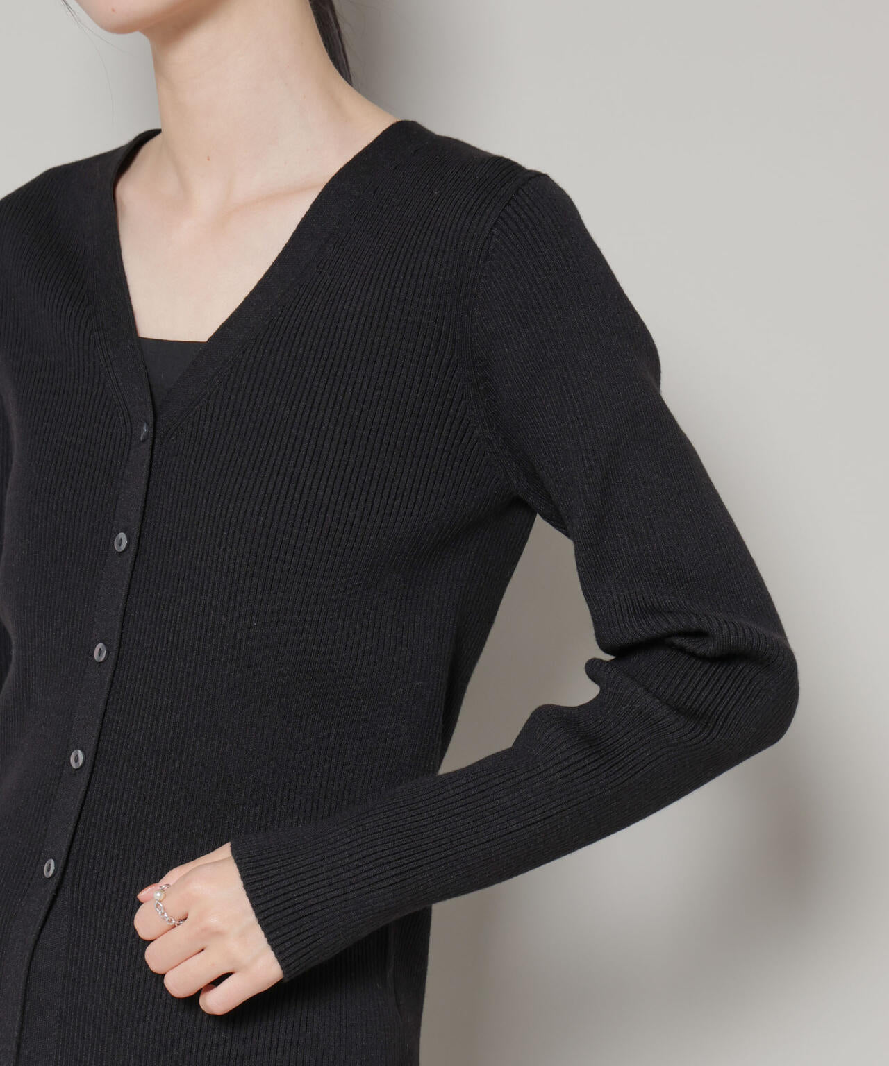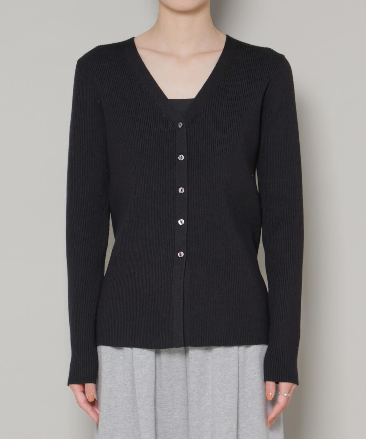 程良くタイトなサイズ感と裾のスリットが抜け感溢れるリブニットカーディガン