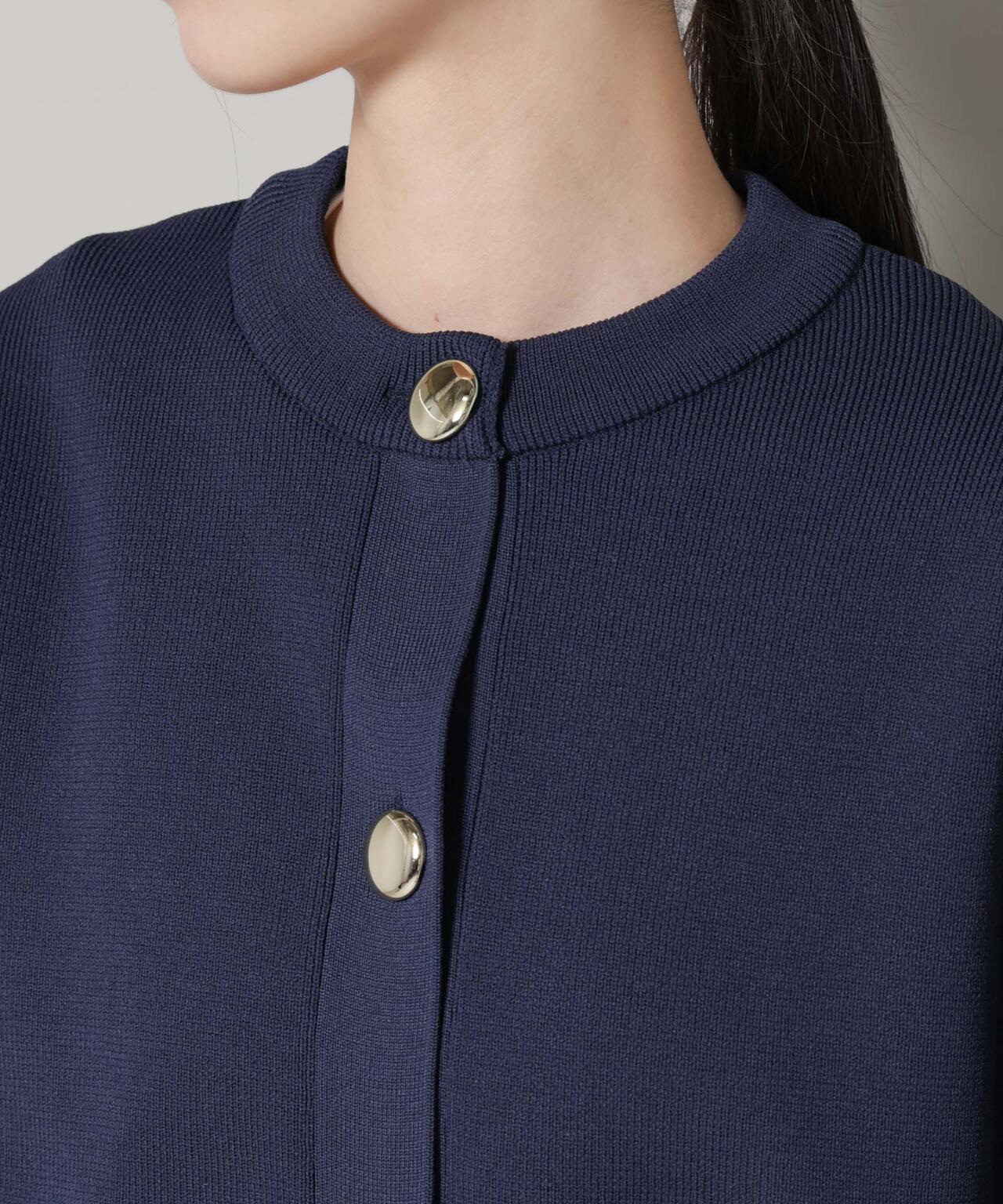 スタイリングのポイントになる大きめのゴールド釦が目を引くニットカーディガン