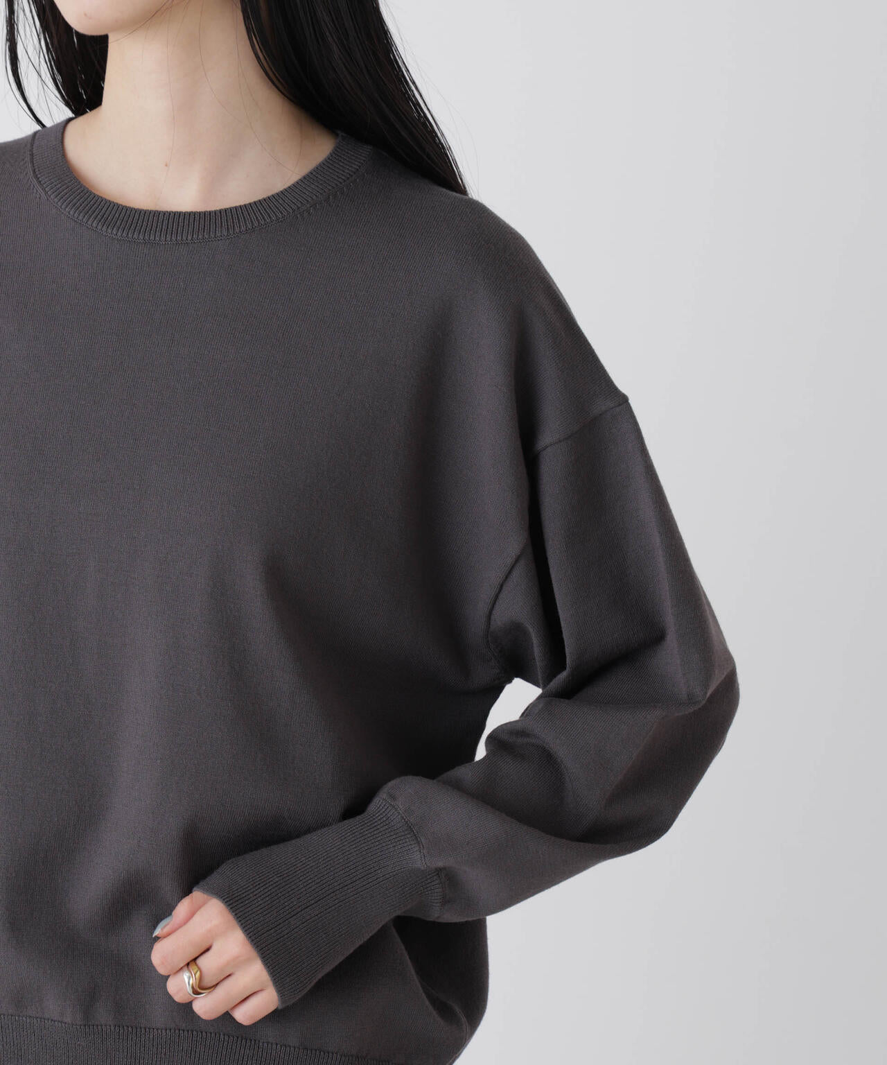 ・すっきりとしたクルーネックで、首元をきれいに見せるデザイン
