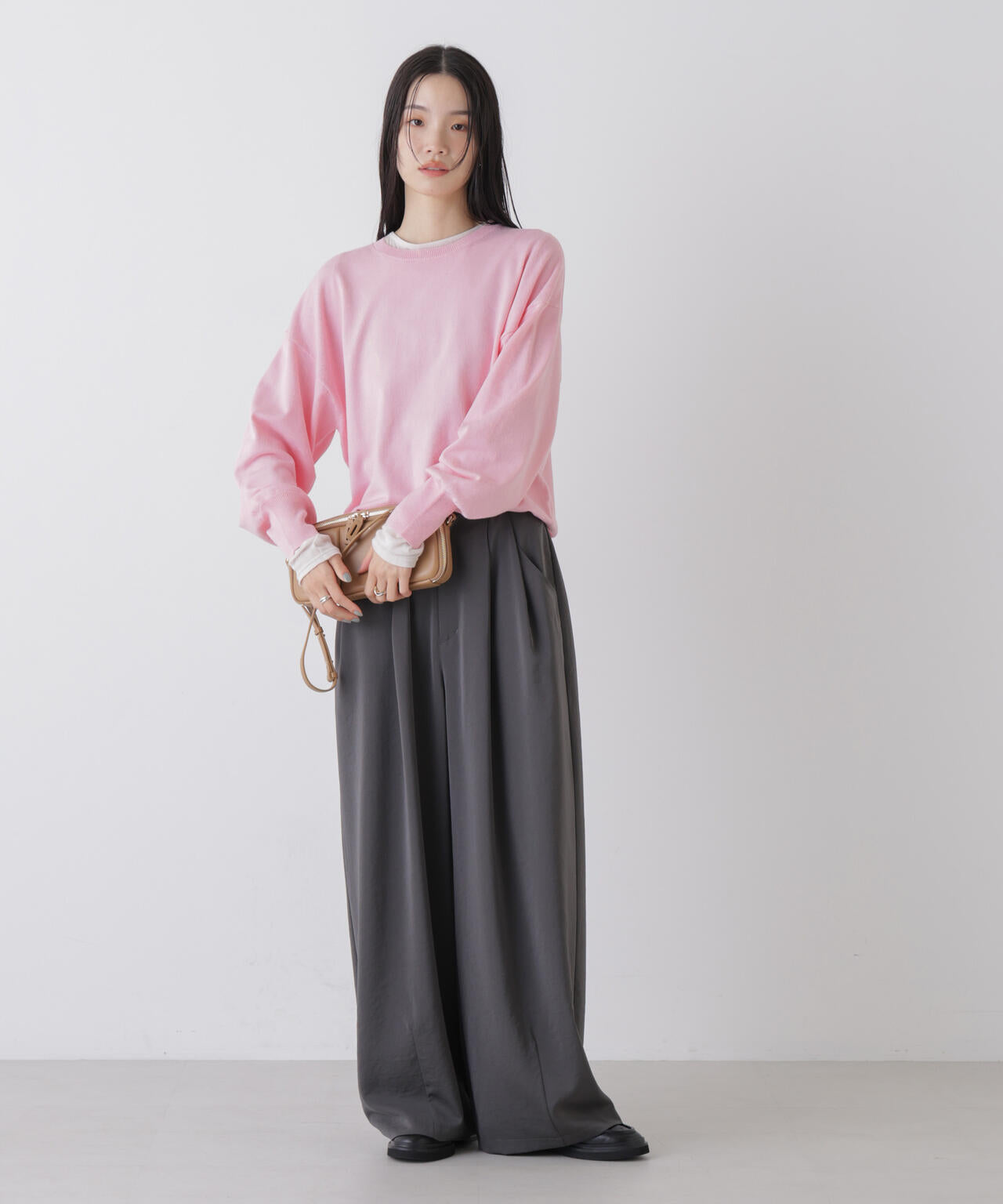 程よいゆとりと心地よい素材感が魅力のワイドプルオーバーニット