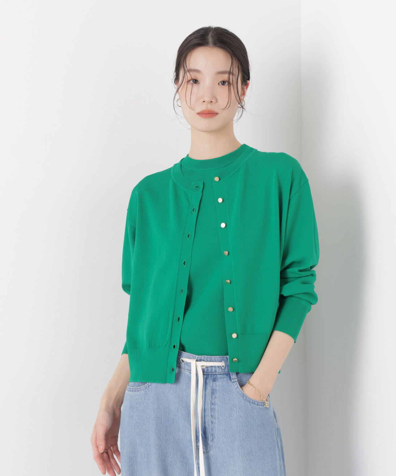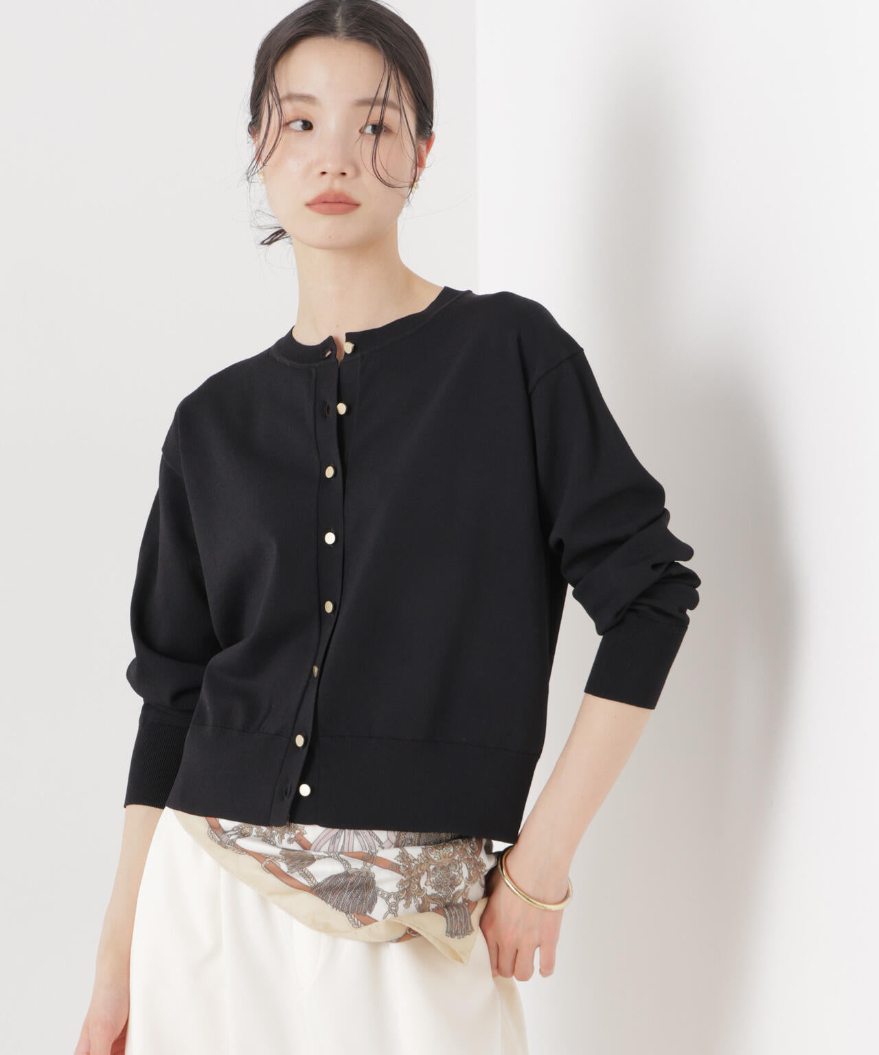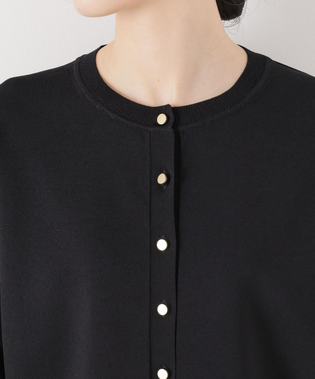 毎年ご好評の洗濯機洗い可・UVカット・接触冷感の機能性が揃ったニットシリーズから新型が登場!ベーシックなアイテムながら金ボタンが華やかさをプラス。ご自宅でケアできる素材感も魅力です。