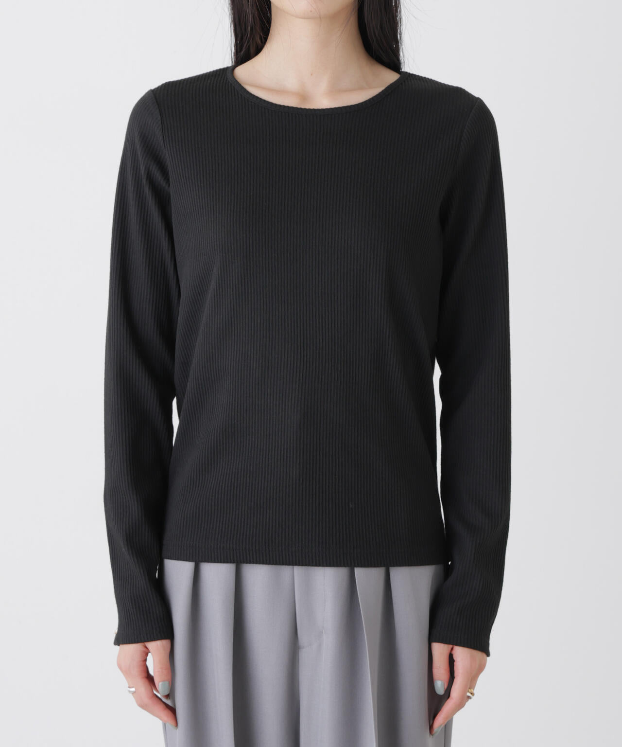・単体でもインナーとしても活躍する万能なリブカットソー
