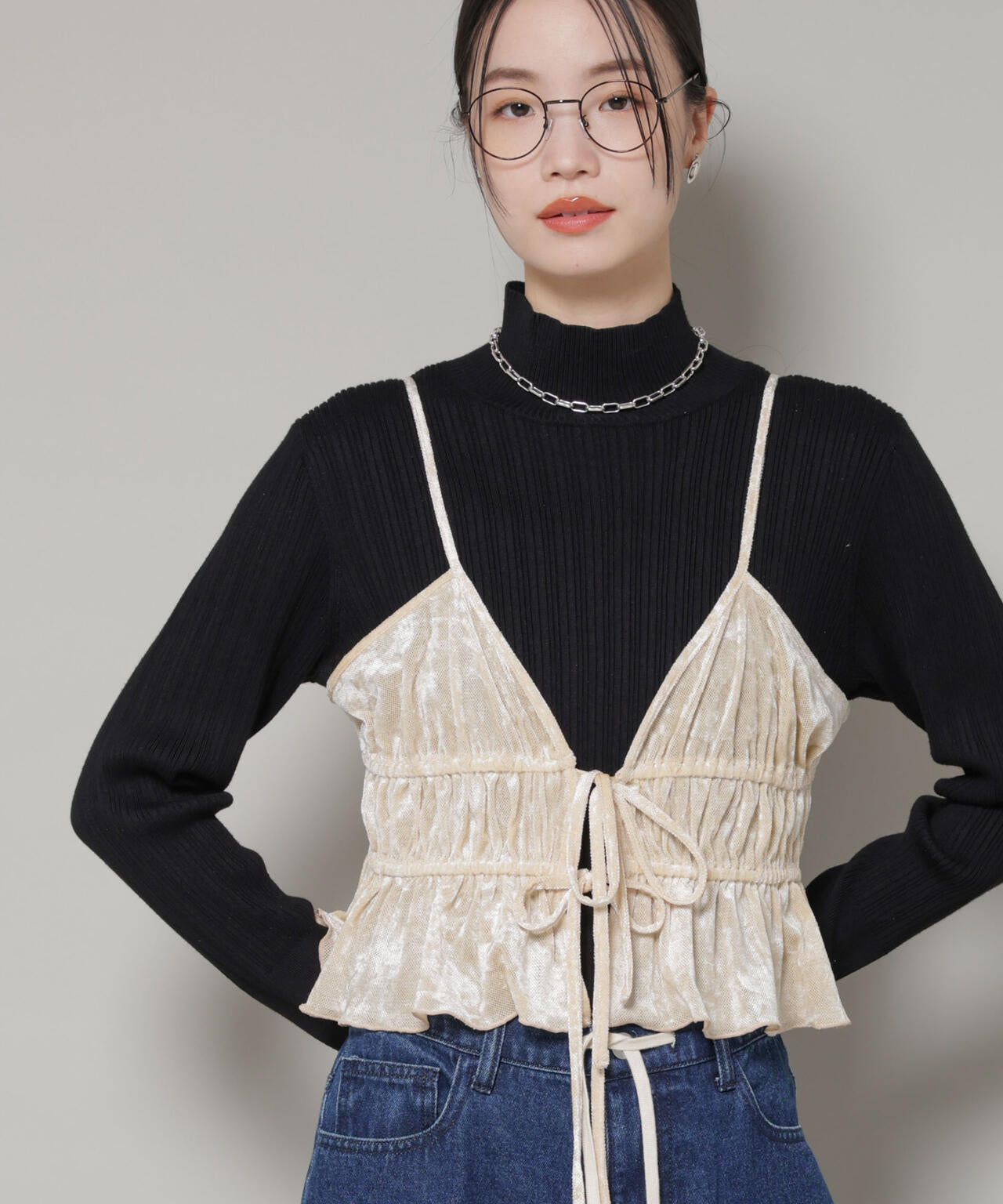 アクセサリー感覚でレイヤードスタイルを楽しめるキャミソールビスチェ