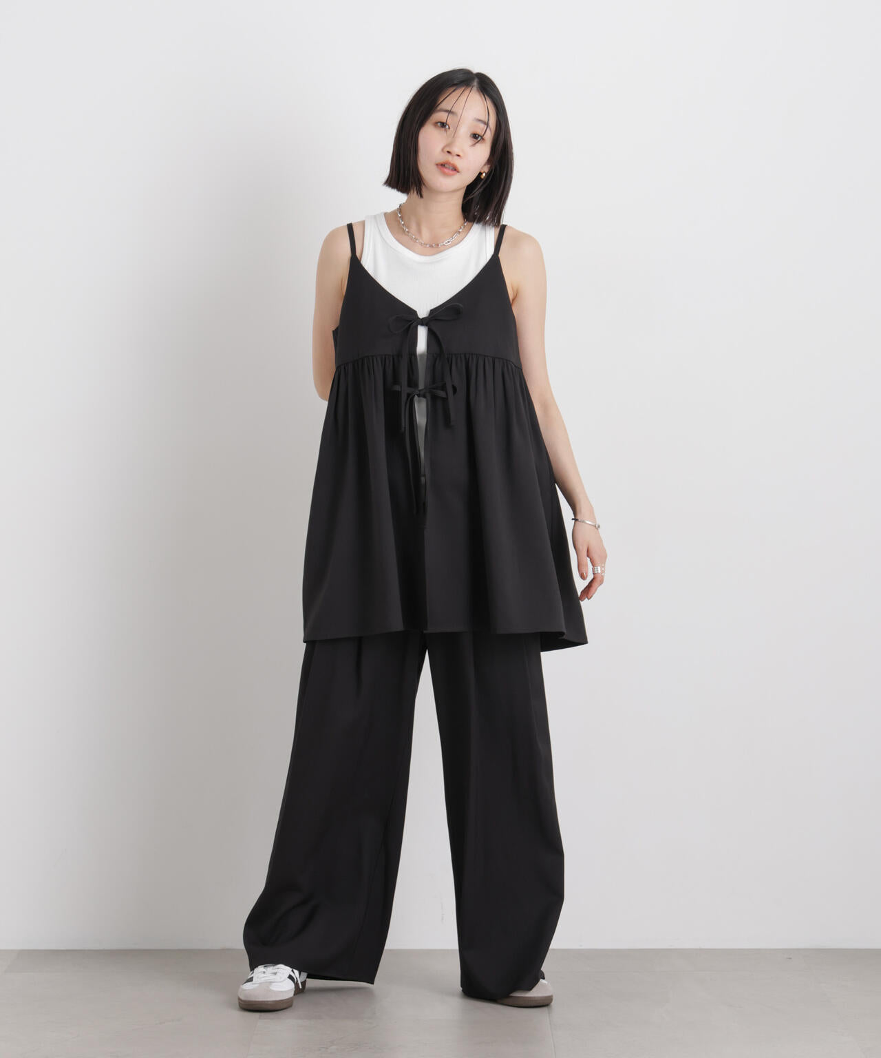 ・6736121308 微光沢ツイル前後2wayリボンキャミソール(セットアップ可)
