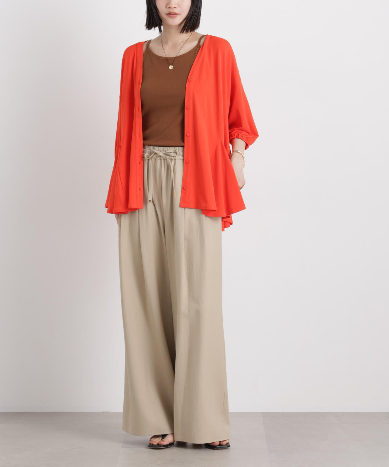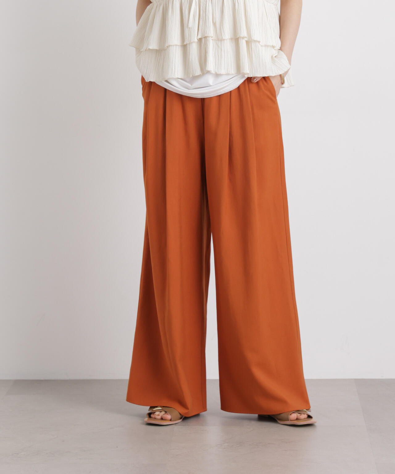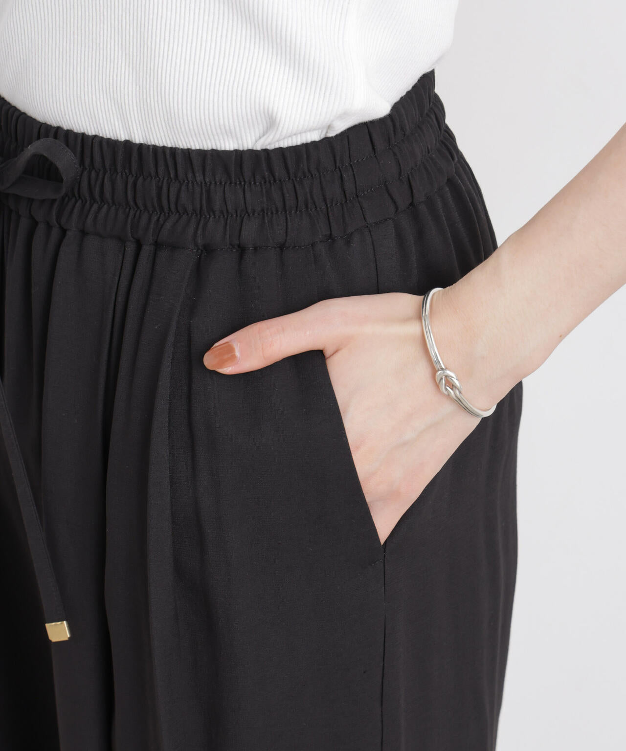 リラックスした穿き心地ときれいめな印象を両立したイージーパンツ。ウエストのドロストが程よいカジュアルさを添えつつ、上品な素材感が落ち着いた雰囲気を演出。肌離れの良いさらりとした質感で、夏の通勤スタイルにもぴったりの一着です。