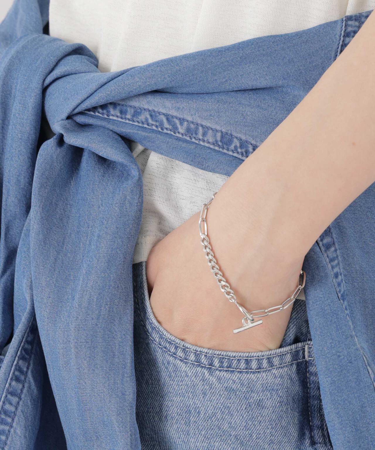 デザインの異なるチェーンを組み合わせたミックスデザインブレスレット。程よいボリューム感でシンプルながら存在感があり、重ね付けにもおすすめ。留め具はマンテル式で簡単に付け外しできるのも嬉しいポイントです。